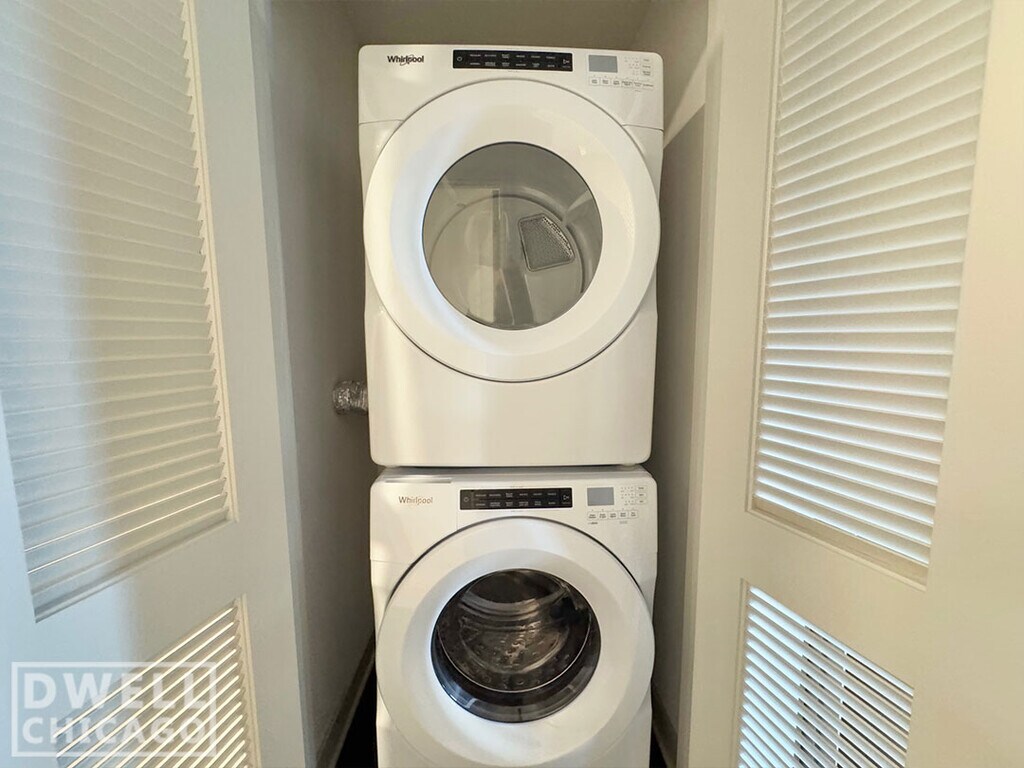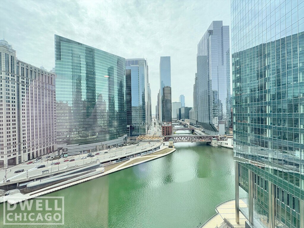 River North – Top of the Line Studio, 1 Bath (26th Floor – River View) High-floor studio with floor-to-ceiling windows overlooking the Chicago River. Designed for efficient luxury living with stainless steel appliances, quartz countertops, Kohler fixtures, and wide-plank espresso flooring throughout. Smart details include an Ecobee thermostat and Latch keyless entry. - River Views - Dishwasher / Washer / Dryer - Smart Thermostat + Keyless Entry - Fitness Center + Co-working Lounge - Pool & Hot Tub - Private Riverwalk Access Ideally located at the intersection of River North and The Loop, with quick access to the Brown Line, Merchandise Mart, and downtown offices.