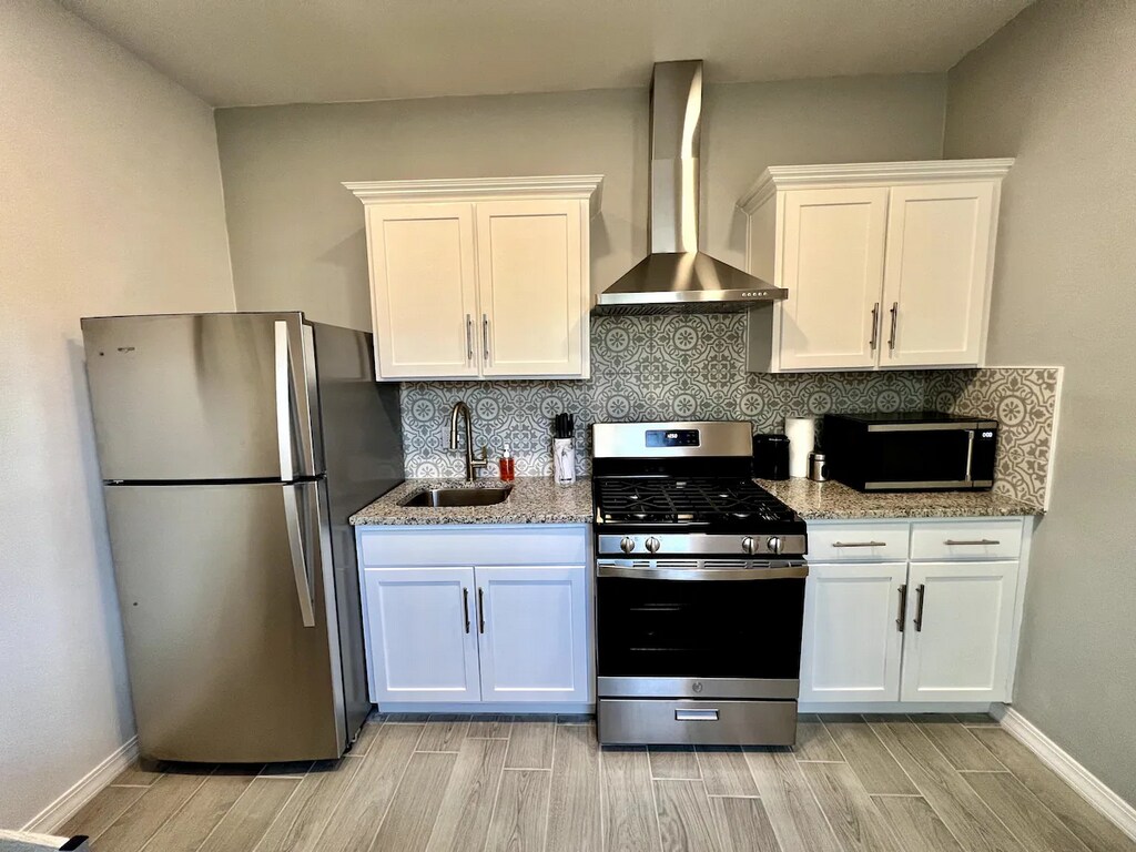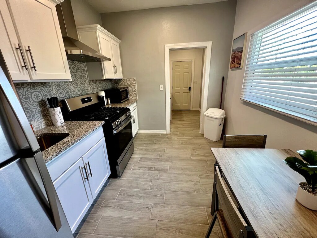 NEW! Chic Retreat - Casa Stevens 2 Step into a newly remodeled modern oasis: Kitchen: Custom cabinets, stainless appliances, & all essentials. Bathroom: Floor-to-ceiling shower & sleek vanity. Bedroom: Plush queen bed & storage. Living Area: Stylish sofa, 58" 4K TV, & work desk with Ultra Fast Fiber Internet. Extras: Private parking (2 cars), communal BBQ, free laundry access. Experience comfort & style in the city's heart. Perfect for both work & leisure! Book now.