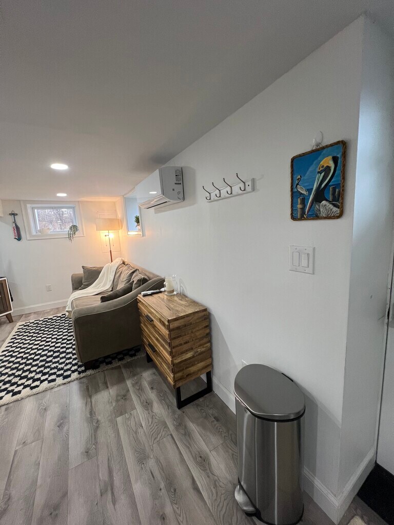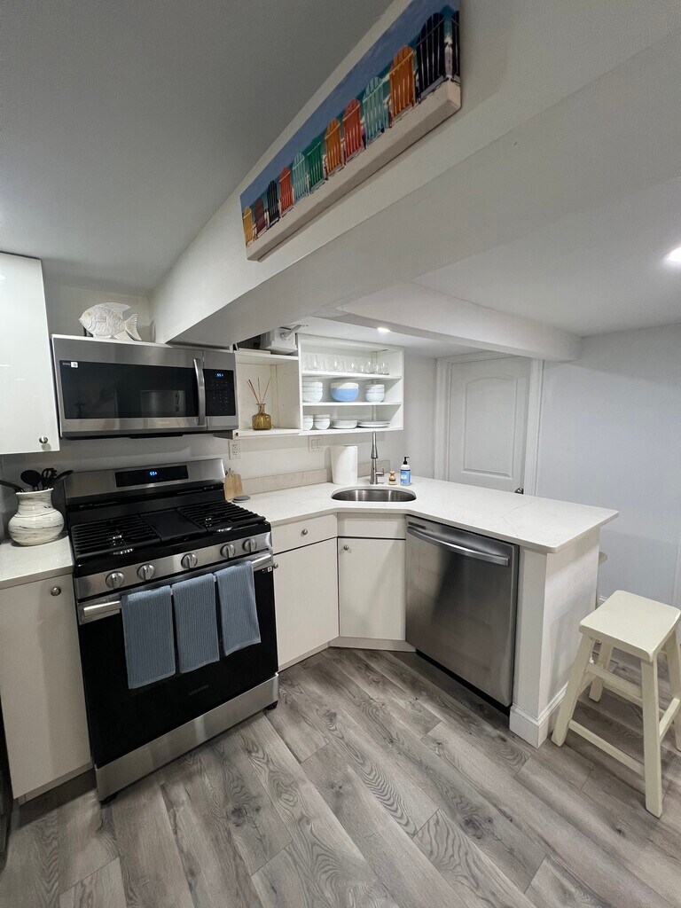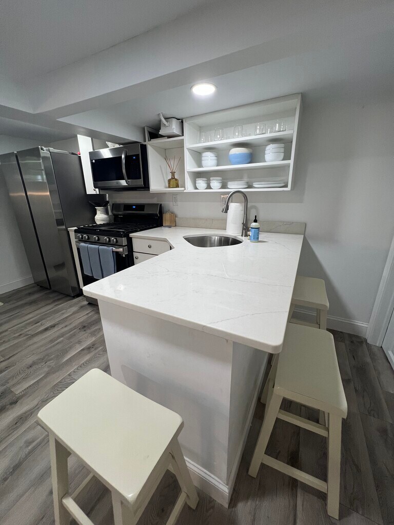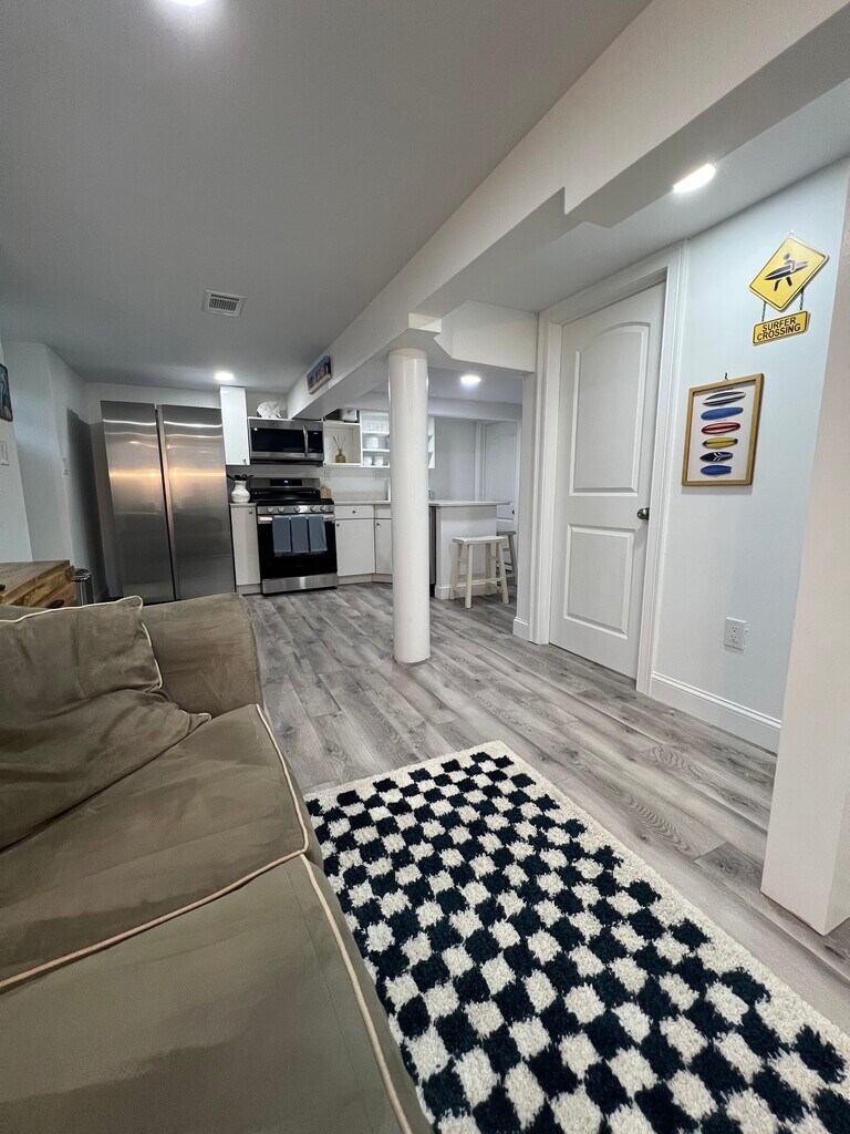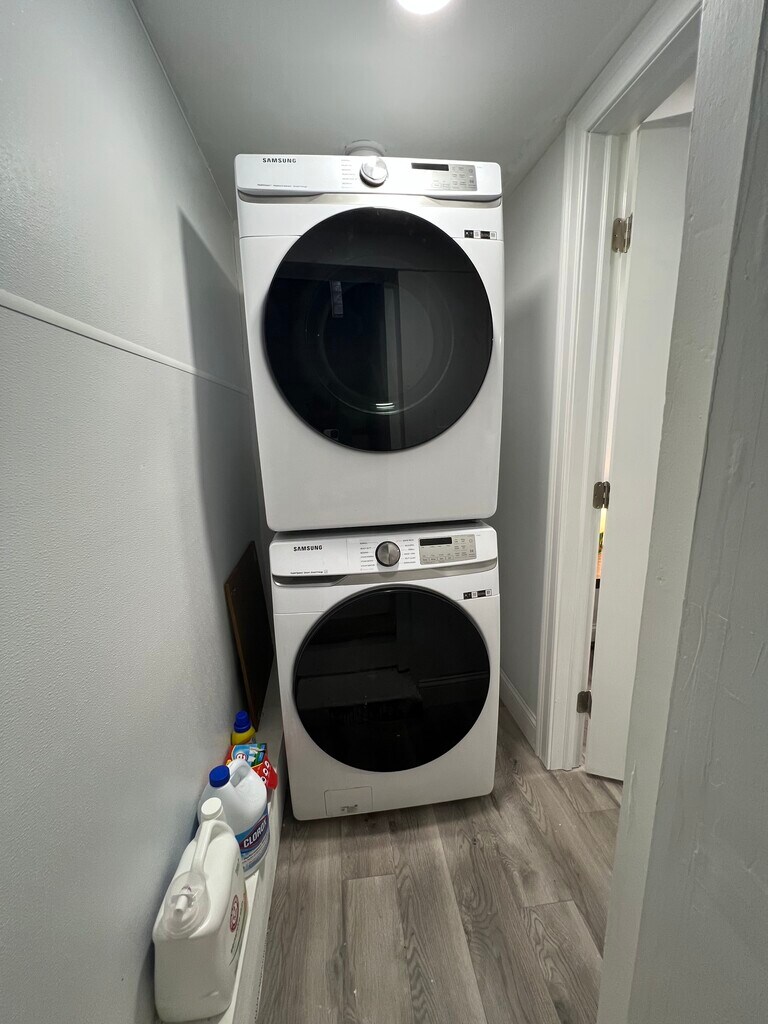 Bright and fully furnished one-bedroom apartment with all brand-new Samsung appliances, shared washer/dryer, full bathroom, smart TV, queen bed, spacious closet, and high-speed WiFi. Enjoy driveway parking and a brand-new heating/cooling system for year-round comfort. This peaceful retreat has everything you need to feel right at home.