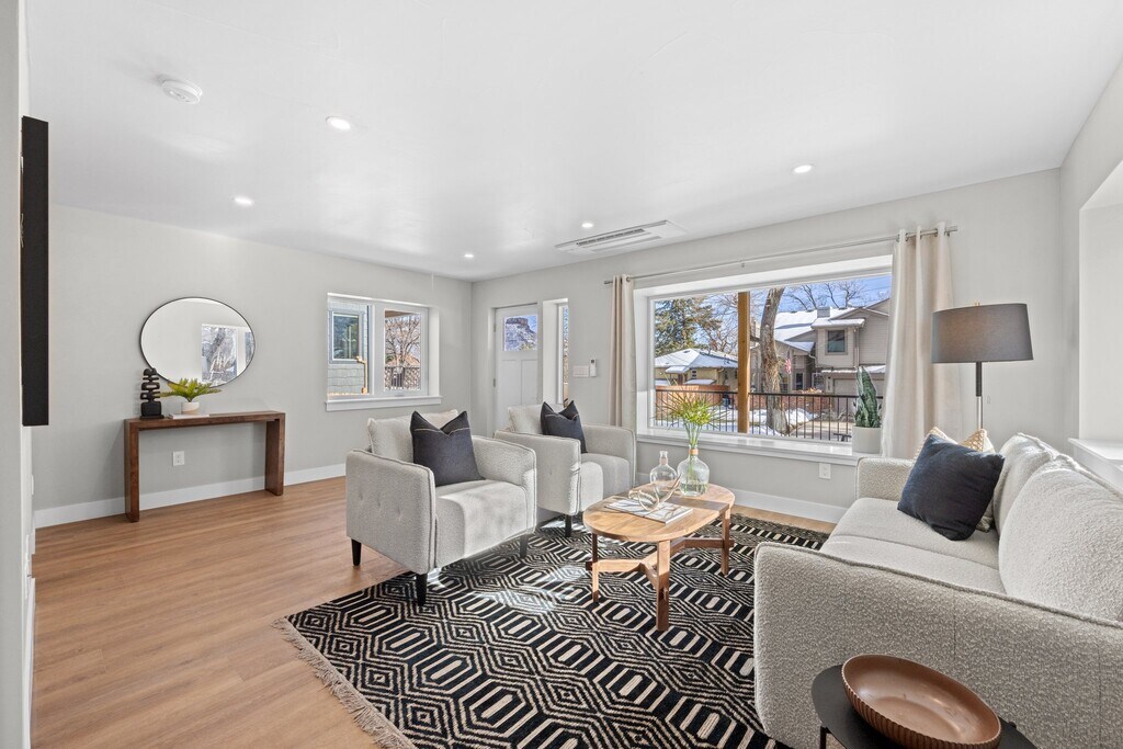 Be the second person to live in this stunning custom 3 bedroom, 3.5 bath house in downtown Golden, Colorado. Located in a historic district, this 1939 all-stone home was completely renovated and updated to modern standards in 2024. It is a quiet dead-end street with historic charm and easy access to highway 58, 93 and 6th Ave. Amenities include a new state-of-the-art high efficiency heat pump washer/dryer combination, mini split heating and cooling with five separate zone controls and heat pump hot water heater. Each bedroom has its own climate control. Two primary bedrooms with ensuites are on the second level and one large bedroom with an adjacent bathroom and a second living ropom located in the basement. The home is filled with natural light thanks to new modern windows. Efficiency was the focus of this property, which translates into low utility bills. There is an attached single oversized garage with automatic garage door and 220v outlet for electric vehicle charging. Location, location, location. Three blocks from Clear Creek and the Peaks to Plains path. Six blocks to Parfet Park and 4 blocks to Lions Park. The summer Farmers Market takes place three blocks away next to the public library. Amazing restaurants, shops, Downtown district, School of Mines Campus, the Golden Recreation Center, and the Colorado Mountaineering Center are a short walk from your front door. Access to several hiking and biking trails and kayak course. Appliances included are washer/dryer combo, refrigerator, range, microwave and dishwasher. Features Include: 2,054sqft Mountain and Mesa Views. Sunny, Bright and Layout. Two Family Areas. Eat In Kitchen with Island. Vaulted Ceiling in Primary Bedroom. South Facing. Paverstone Driveway. Attached Single Car Garage. Storage Closets. Luxury Vinyl Plank Throughout Home. Tiled Bathroom Floors. Luxurious Porcelain Slab Shower/Bath Walls. Quartz Countertops and Island. Custom Built Cabinets Throughout. GE Profile Stainless Steel Appliances. Sweeping Front Porch has Direct Views of the South Table Mesa and the Famous Castle Rock. 2nd Level Laundry Area. 20 minutes to downtown Denver. 20 minutes to Boulder. Trash/recycle and compost service are included. No smoking on premises. No pets. Water and Electric are not included.