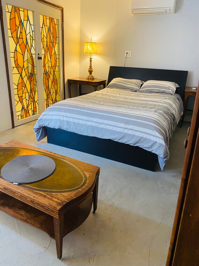 Private. Cute little Studio available for short-term. Furnishings included. Small kitchenette, Smart Tv, wifi, large shower with classic claw tub. Available for month stays. Available for short term / utilities included on short terms stays.