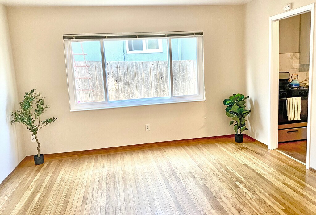 This fantastic ground floor 2 bedroom unit is in a great Albany location, just about a block from vibrant Gilman St., with excellent shopping and restaurants nearby and a couple of streets above San Pablo Ave. This tree-lined street has mostly single-family homes. This updated apartment features hardwood floors and new windows on all sides which let in lots of natural light. The large kitchen has a door to the garden, room for a breakfast table across from the back door, quartz stone countertops, stainless appliances including a dishwasher and stylish tile work. A hallway with a separate hall coat closet and a separate linen closet leads from the living room to the bedrooms and bathroom. There is also a large closet in each bedroom. The apartment is on the back side of the 4-unit building with a common peaceful backyard. A one-car garage is included with the rent. A separate laundry room is off of the backyard with app or coin-operated laundry machines. Top-rated Albany schools. An indoor cat would be considered.