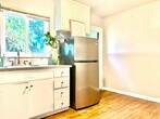 This fantastic ground floor 2 bedroom unit is in a great Albany location, just about a block from vibrant Gilman St., with excellent shopping and restaurants nearby and a couple of streets above San Pablo Ave. This tree-lined street has mostly single-family homes. This updated apartment features hardwood floors and new windows on all sides which let in lots of natural light. The large kitchen has a door to the garden, room for a breakfast table across from the back door, quartz stone countertops, stainless appliances including a dishwasher and stylish tile work. A hallway with a separate linen closet separates the other rooms. There is a large closet in each bedroom. The apartment is on the back side of the 4-unit building with a common peaceful backyard. A one-car garage is included with the rent. A separate laundry room is off of the backyard with app or coin-operated laundry machines. Top-rated Albany schools. An indoor cat would be considered.