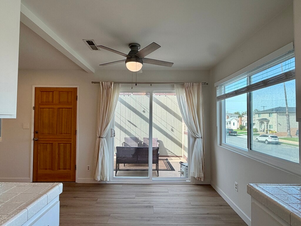 Now available for lease, this beautifully updated 2-bedroom, 2-bath condo is ideally located in the heart of Gardena, offering comfort, style, and convenience. The home features brand-new luxury vinyl flooring, recessed lighting throughout the living areas, and a spacious, light-filled living room with an open and inviting layout. The kitchen is equipped with stainless steel appliances, and the lease includes refrigerator, washer, dryer, and microwave for added convenience. Both bedrooms feature ceiling fans, while the secondary bedroom is enhanced by a new custom closet door. The primary suite offers a walk-in closet and a full en-suite bathroom, with both bathrooms featuring extended vanities and ample storage. A highlight of the home is the large private patio, accessible through a sliding door perfect for indoor-outdoor living. The patio is generously sized to accommodate a 6-person dining table, BBQ, lounge seating, or play area, and is accented with string lighting. The owner is open to leaving the patio furniture, making this an easy move-in option. Additional features include wall-to-wall hallway cabinetry for exceptional storage, a private two-car garage, complete with an additional freezer and storage cabinet, plus two additional parking spaces directly in front of the garage ideal for guests. Situated in a quiet, well-maintained community of only eight units, this condo offers a peaceful residential setting while remaining close to top Gardena restaurants, grocery stores, shopping, and convenient access to the 110, 91, and 405 freeways. A rare lease opportunity combining space, storage, and location this home is not to be missed.