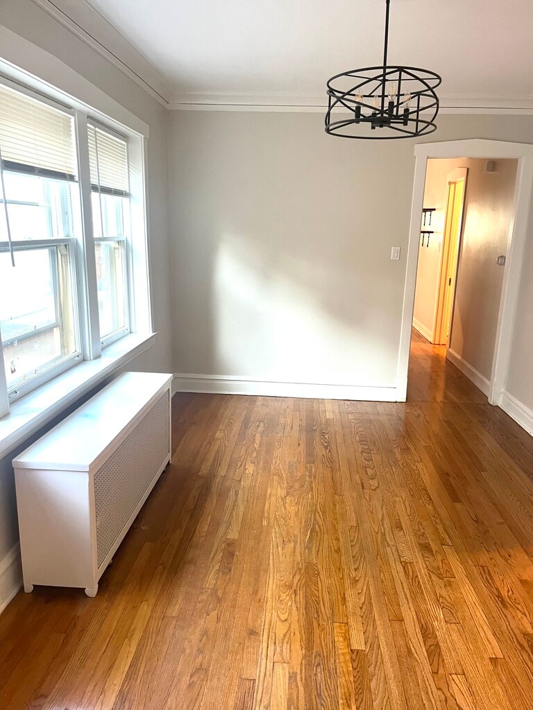 Newly renovated two bedroom, one bath apartment in a three unit building. New kitchen appliances, cabinets, fixtures, etc. Granite countertops. Beautiful living room with ten windows, lots of light. Separate dining room. Hardwood Floors throughout. New bathroom. Parking space available. Close to public transportation, walk two blocks to blue line. Restaurants, ice cream, groceries, etc., two block walk. Heat included. One parking spot included.