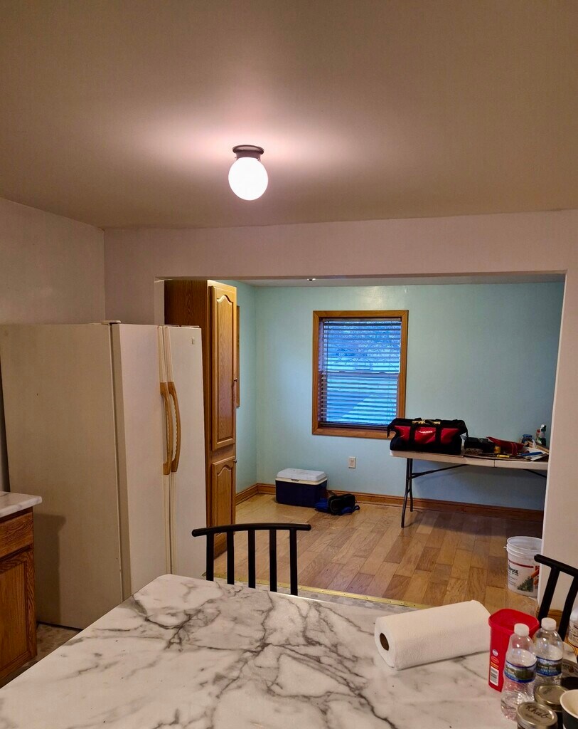 Small, cozy 2 story Coachman style house located in a good neighborhood of Janesville- close to downtown area and the interstate. Bedrooms and 3 quarter bathroom located on the upper level. Livingroom and kitchen combo dining area on the main level. Four season porch off the entryway. Full unfinished basement with laundry hookup for washer/electric dryer, and storage area. Appliances included- stove, refrigerator, dishwasher, and water softener. Forced air natural gas heat and A/C. Detached one car garage for a small compact size car or use as for storage. One pet allowed- small dog under 25#, breed restriction apply, with pet deposit/monthly fee. No utilities included in the rent. Tenant(s) to take care of water softener salt, snow/ice removal, and lawncare. Applicant gross income must be 3x rent. No evictions. Rent $1,075 per month. Security deposit $1,075. Available February 1st. , m