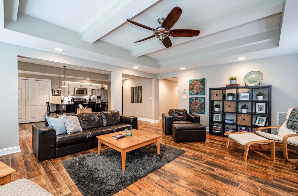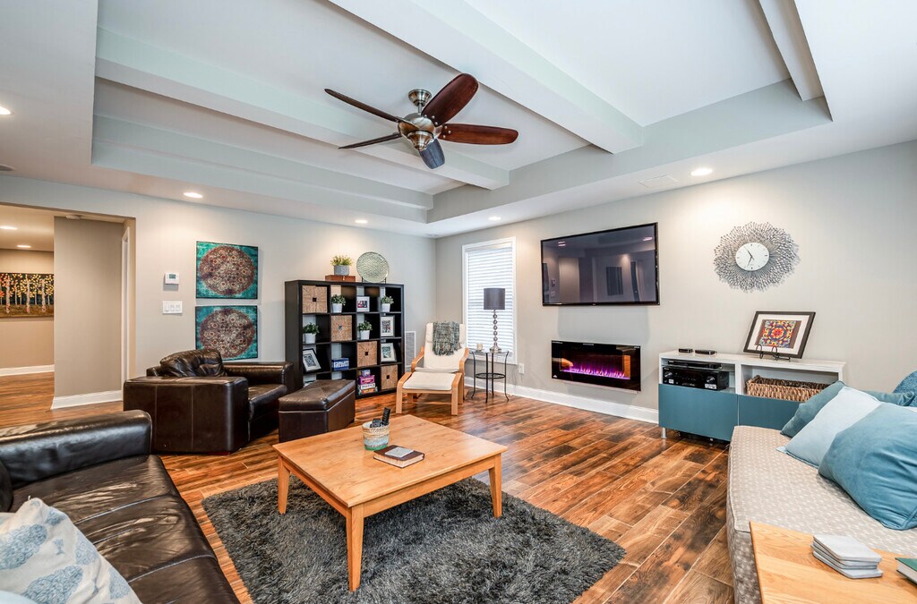 Modern luxury, fully furnished apartment in upscale Kennesaw/West Cobb area. Great for corporate business or short-term rental. Fully equipped entire floor apartment conveniently located near restaurants, hiking trails, and local points of interest. The property includes access to a large scenic back yard with patio/swing, and walking trail access. Amenities: Large family room with internet TV and electric fireplace. One bedroom with queen bed, one bath with walk-in shower, full kitchen, washer/dryer. Quiet, safe neighborhood. Private entrance with parking access. All utilities included. No pets, smoking, or loud music.
