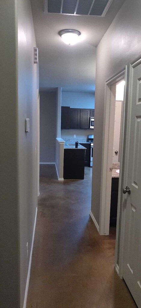 3 BEDROOM + 2 BATH Newly renovated duplex townhouse with fenced backyard. GREAT LOCATION !! Close to everything: Shopping, food, schools, University, Edmond North HS, Walmart, Kohls, Sprouts, shopping, food, gym, Hop onto Broadway Ext to get downtown OKC. Newly renovated 3 bedroom, 2 full bathroom duplex. Master bedroom has private bathroom and HUGE walk in closet. Large bedrooms with lots of closet space and storage. Laundry room area with extra shelving and storage. Granite Counters throughout, Stainless steel appliances in kitchen, gas range, dishwasher, microwave. Modern open spacious design. Pantry closet in hallway Double attached garage parking with attic storage. Stained Concrete floors in living areas, CARPET in bedrooms. Low monthly utility bills. Students welcome. HUGE walk in closet off master bedroom. (it really is massive) 1255 sq ft NICE MODERN Light grey paint colors throughout. THESES UNITS RENT OUT QUICKLY. Availability of move in date is negotiable.