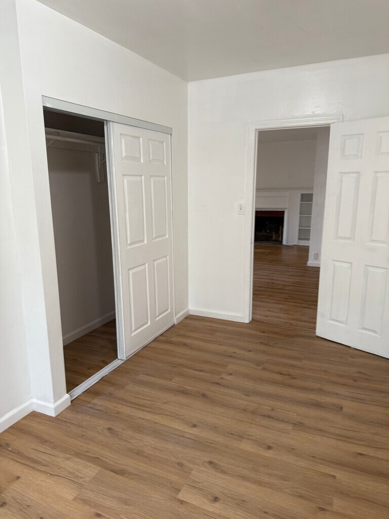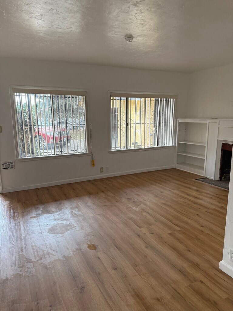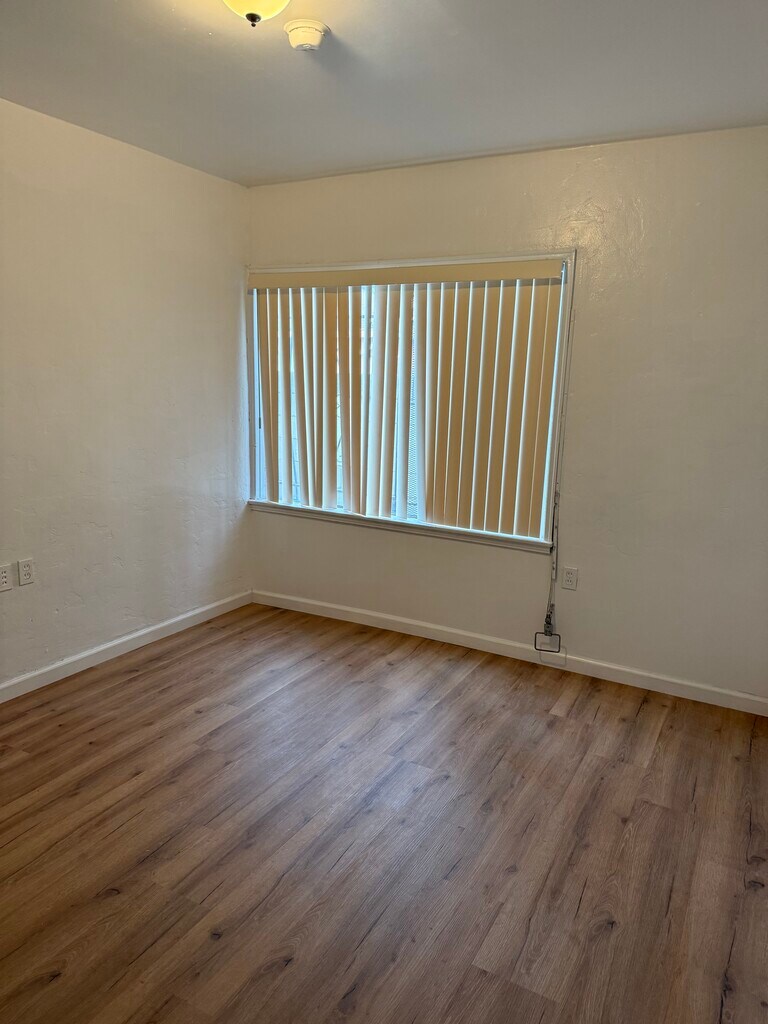 This is a duplex with a large yard. You share a common wall with the other unit. There are common areas of the porch, large patio and yard. There is no laundry hookups, yard is fenced, gardener will be supplied. Unit is freshly painted, new floors, new bathroom fixtures, large kitchen with lots of cabinet space, dining area in kitchen, security bars on windows, drive way parking.