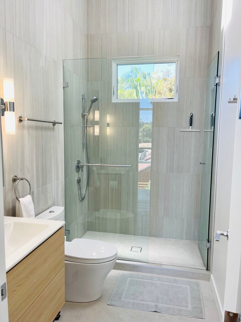 Just 1 block from the stunning Grandview Beach, a sweet spot for surfers & sunset walks, our modern beach house designed by my architect father and I offers a great place to unwind with your friends and family. Stroll to shops & restaurants nearby or BBQ on the patio & enjoy a movie night in. Enjoy a heated outdoor shower, dedicated work space, fully equipped kitchen, room darkening shades, walk-in closet, washer/dryer, garage parking, A/C, fans and an avocado tree all West of HWY 101 & I5! The space Giant master bedroom with walk in closet, full bath and king sized bed. Two rooms with queen size beds and plenty of room and light. One bonus bedroom with full size bed and full office with standing desk. Great area for running, cycling, surfing, swimming, and getting outside in the California sun. Park off street in two car garage. Shower outdoors in enclosed outdoor shower. Guest access Whole house and yard is open to you. Other things to note OTHER FEES: Transient occupancy Tax: Encinitas imposes a Transient Occupancy Tax of 10% of the proceeds on rentals under 31 days. This is the same tax you would pay at a hotel. Renters pay the cost of this tax, which will be added at the time of booking. Pet fee is $150 per pet.