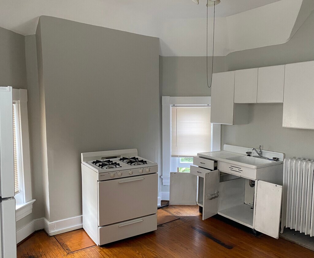 Charming 1 Bedroom apartment on 3rd Floor. This lovely, freshly painted unit has hardwood floors, fireplace, and a bright kitchen with range and refrigerator. Lots of great dining, shopping and several parks are nearby. Heat is included, no smoking please.