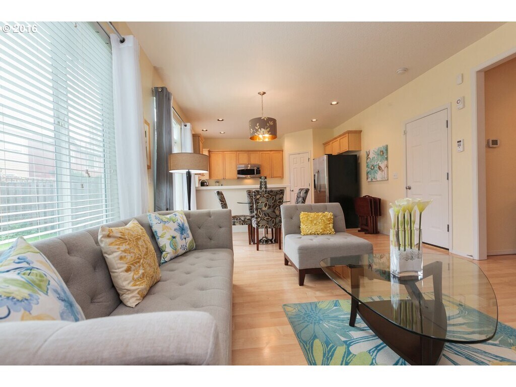 Excellent condition home in the outstanding Arbor Roses neighborhood. Enjoy living in this beautiful neighborhood & take part in activities while enjoying outdoor pool & hot tub, basketball courts & play area. Check out this wonderful 2 level home in great location across the street from Jackson Bottom Wetlands. Open kitchen includes stainless appliances (gas range, refrigerator, dishwasher, microwave) and good size pantry. Kitchen opens to dining & living areas. Slider door from dining area leads out to patio and low care yard with turf grass (always green, no need to water or mow!). Wood floors downstairs & carpet upstairs. Gas fireplace, forced air gas heat, central AC. Half bath downstairs and two full baths upstairs. Upstairs laundry has newer washer & dryer. Spacious primary suite with ceiling fan and walk in closet. Primary bath has double sinks and tile counters as well as a large soaker tub. 2 car garage with opener and epoxy floors. Close to shopping, Shute Park, Hillsboro Library, pool, senior center, MAX train & downtown Hillsboro food carts, dining & activities. OCCUPIED~DO NOT DISTURB! Available 11/1/25 Tenant pays for all utilities-water/sewer, garbage, gas, electricity NO Smoking/Vaping NO Pets 12 month lease 3 bed/2.5 bath 1671 sq ft $2525+ security/cleaning deposit Proof of renters liability insurance required