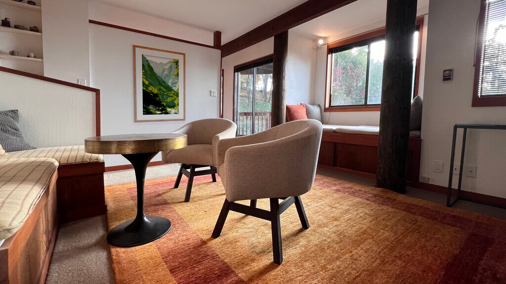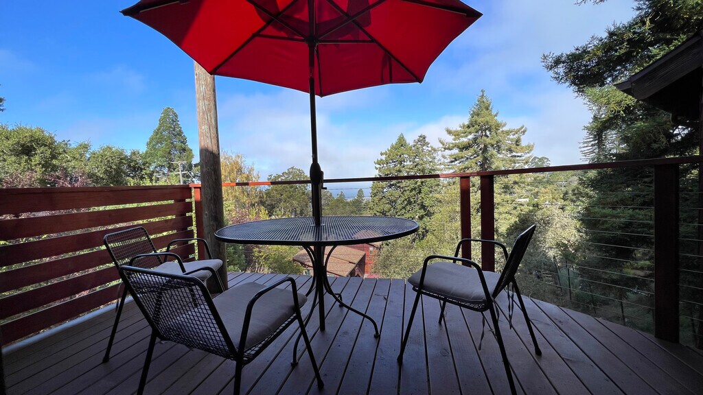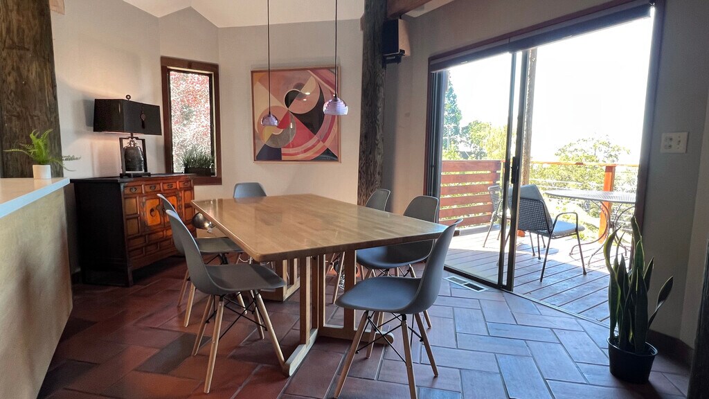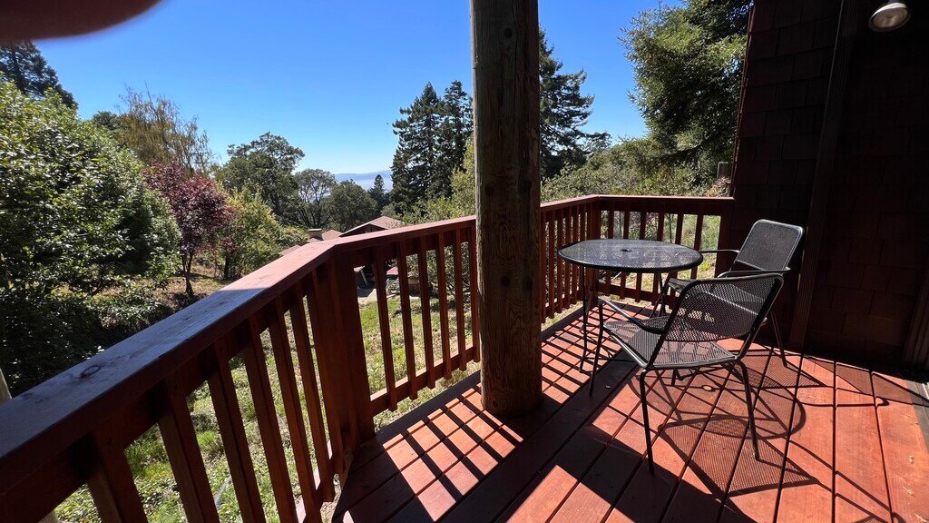 This is a fully furnished architectural gem located in the North Berkeley Hills available for long term rental. Built in 1976, the 3 bedroom 2 bath pole house sits at the head of a small canyon. Just a 7 minute drive to UC Berkeley the house is located on a quiet street and sits on a double lot providing a serene and peaceful setting (there are currently 3 bucks, a doe and fawn that live on the property). Panoramic views of the San Francisco Bay and Mt Tamalpais from the large west facing deck and windows throughout the house. Nearby expansive Tilden Regional Park is 3 minutes drive, or 5 minutes drive to shopping, fine dining, and cafes. Also available unfurnished. This family home is fully operational with a well equipped gourmet kitchen (including cookware and dishware), completely furnished common areas and bedrooms 1st Floor: Open plan gourmet kitchen with updated countertops and appliances, eat-in breakfast nook, adjoining small deck Dining room with seating for eight, adjoining large deck with outdoor seating and expansive views of the SF Bay Multi level living room with listening/media platform, large picture windows facing SF Bay and Golden Gate Full bathroom with glass enclosed walk-in shower, new vanity Laundry room, washer, dryer, laundry sink 2nd Floor: Primary bedroom suite with king bed and integrated sitting area, generous closet storage Bedroom #2-with double bed and integrated work/study area Full bathroom with new double vanity, glass enclosed bathtub/shower 3rd Floor: Bedroom #3-Twin bed on main level, this room has additional loft with a second twin bed, couch seating and integrated workspace, amazing views of the entire SF Bay and Golden Gate Bridge from this top floor bedroom Utilities included.