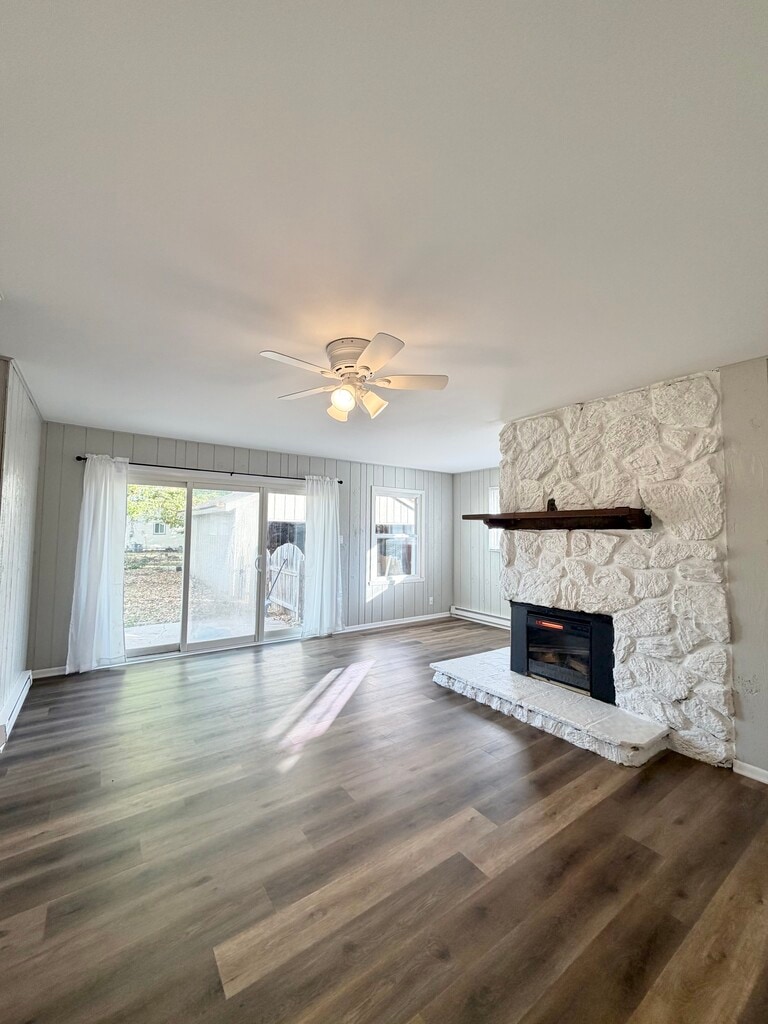 Welcome home!! So much about this house is new! Freshly painted, new flooring, new kitchen and new bathrooms! This spacious 4 bedroom 2 bathroom home has a fantastic floor plan with the kitchen, eating area, and living space nice and open. There's three bedrooms and a bathroom down the hall off the front living space while the fourth bedroom and second bathroom is directly off of the back living space. Updated stone fireplace with built in electric fireplace! There's main floor laundry hookups in the laundry room off of the back living space. Hall closet outside of bathroom for linens or bath towels. Entry closet for coats and shoes. A two car garage provides plenty of space for storage, a place to keep snow off your car, and/or working on projects! Located on a quiet street with a large fenced backyard. This house is ready to be loved and it won't last long! No central air. Owner to provide (but not maintain) two powerful portable air conditioners. $1825/mo rent + $1825 security deposit. Tenant pays all utilities. Tenant handles lawn care and snow removal. Pets (dogs and cats - some limitations apply) allowed with monthly pet rent and additional security deposit. All persons residing at the address over the age of 18 must submit an application and submit to a credit and background check in order to be considered for tenancy. No evictions. No smoking in home. Positive credit. Clean background check. Positive and verifiable rental history. Monthly household gross income of at least $5,475 required. First month's rent due at signing (non-refundable). Security deposit due at move-in. Must pay rent online through tenant portal.