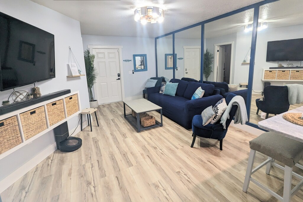 FULLY FURNISHED + UTILITIES INCLUDED 6 minute walk to the sand! Bring the whole family to enjoy fun in the sun at our beautiful undisturbed beaches on Hutchinson Island. Hear the sound of waves breaking from the front door. This ground level unit has been fully renovated. Just steps to the ocean, this home is close to boat ramps, parks, restaurants, ball fields, boating, surfing, fishing and many more activities for a fun beach side getaway.