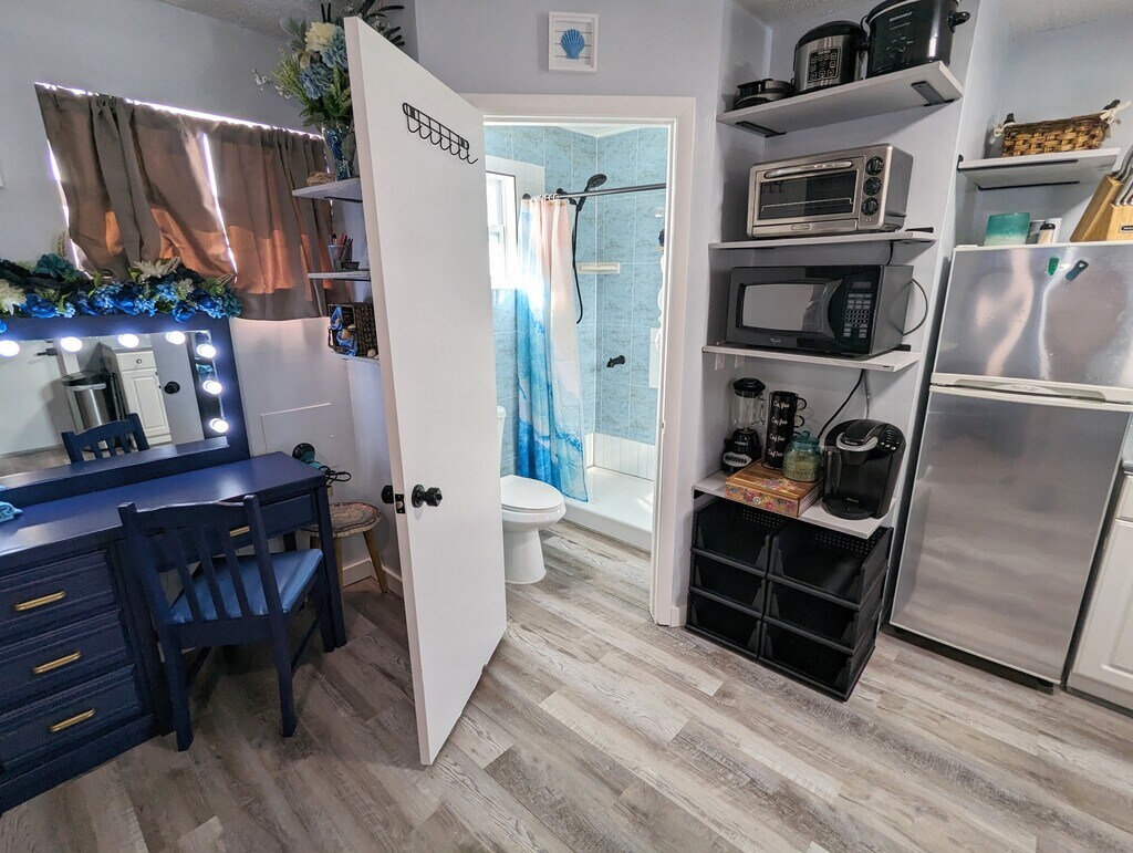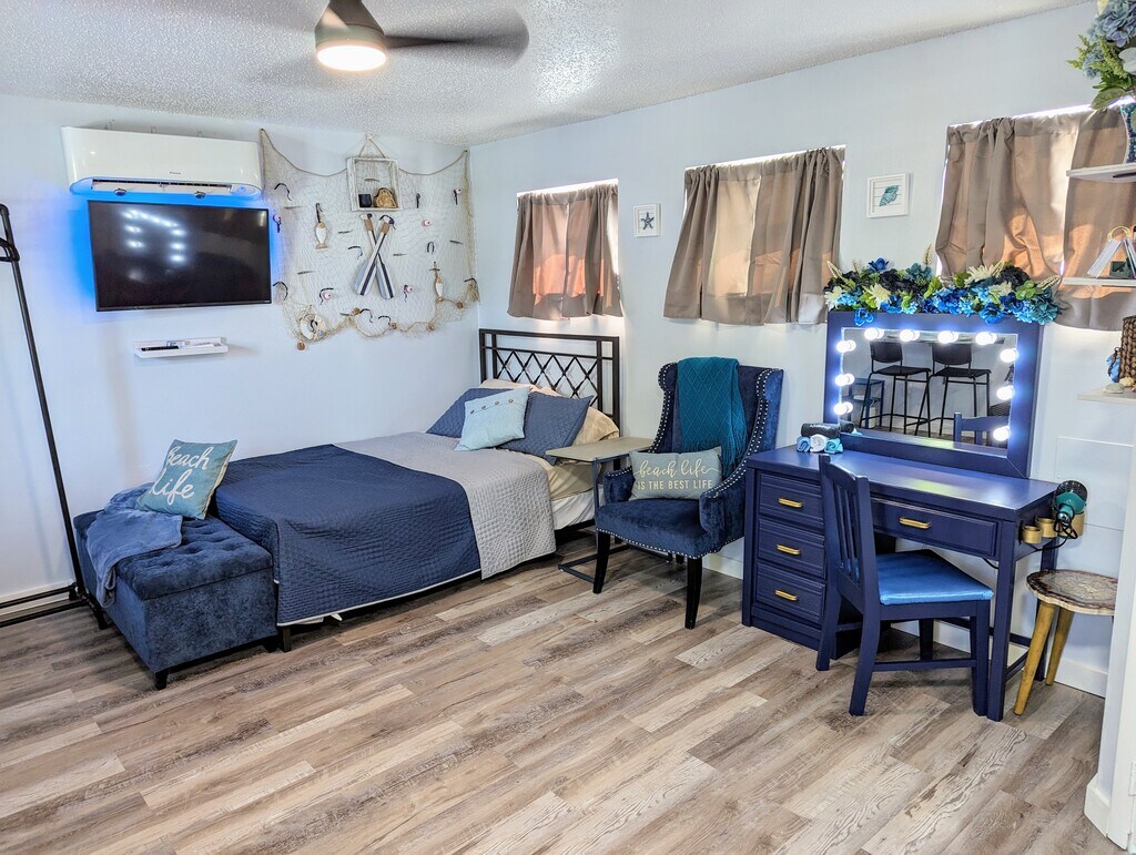 FULLY FURNISHED with UTILITIES INCLUDED 2nd floor studio apartment has everything you need to enjoy a relaxing beachside getaway. Full size bed, additional air mattress with extra pillows and extra linens. This unit has a 42" smart TV, ambient lighting with beach decor. The kitchenette has every kitchen gadget you can think of from slow cooker, griddle, cooktop, rice maker, Keurig, pots and pans. Get ready for a night out at the vanity complete with lighting and hair dryer. Before or after you hit the beach get a tan on the private 2nd floor sun deck! This unit has FAST wifi and an abundance of entertainment available on the TV. Enjoy this Beachside Studio, hear the waves break while you lounge on the 2nd floor deck or bring your surf board and head across the street to catch some waves. This Surf Shack is a 6 minute walk to the sand! Come enjoy fun in the sun at our beautiful undisturbed beaches on Hutchinson Island. This freshly renovated unit is close to beach access, boat ramps, parks, and restaurants. Please note the maximum occupancy for this unit is 2 person. This unit is not appropriate for children under the age of 10.