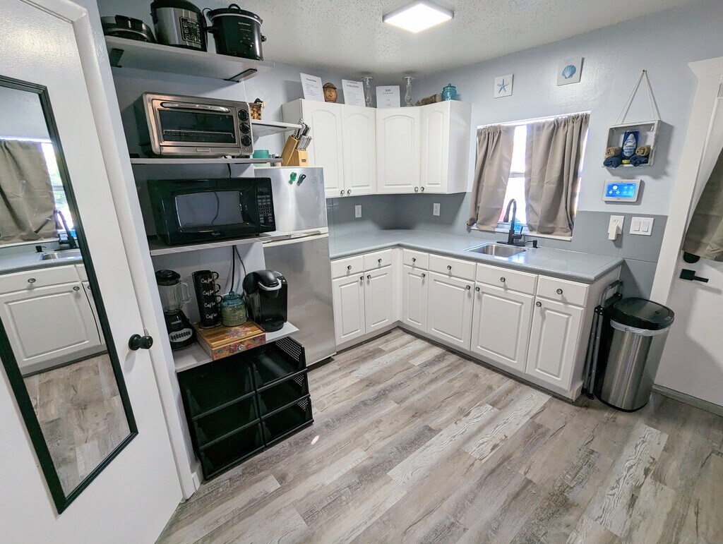 UTILITIES INCLUDED! 1st Floor, FULLY FURNISHED 2 Bedroom 2 Bathroom property has been fully renovated top to bottom. Fully stocked kitchen and linens included! Private washer and dryer inside the unit. The master bedroom hosts a queen size bed with a spa-like shower in the master bathroom. The second bedroom has a full size bed, the guest bathroom has a tub shower combo. The living room sofa also has a pull out queen size bed. Each room has a smart TV. Enjoy a kitchen full of utensils, outdoor sofa, and designated outdoor smoking area. Walking distance to the beach and boat ramps. There is only one steps to enter the property, it is about 2-3 inches high. 6 minute walk to the sand! Bring the whole family to enjoy fun in the sun at our beautiful undisturbed beaches on Hutchinson Island. Hear the sound of waves breaking from the front door. This ground level unit has been fully renovated. Just steps to the ocean, this home is close to boat ramps, parks, restaurants, ball fields, boating, surfing, fishing and many more activities for a fun beach side getaway. Access to entire house and back patio. Unit is on ground level there is one step to enter from the front or back door. The step is about two to three inches high. Hulu, Disney+, ESPN+, Prime, Peacock, Live Streaming TV Beach Toys, beach chairs Board games for the family
