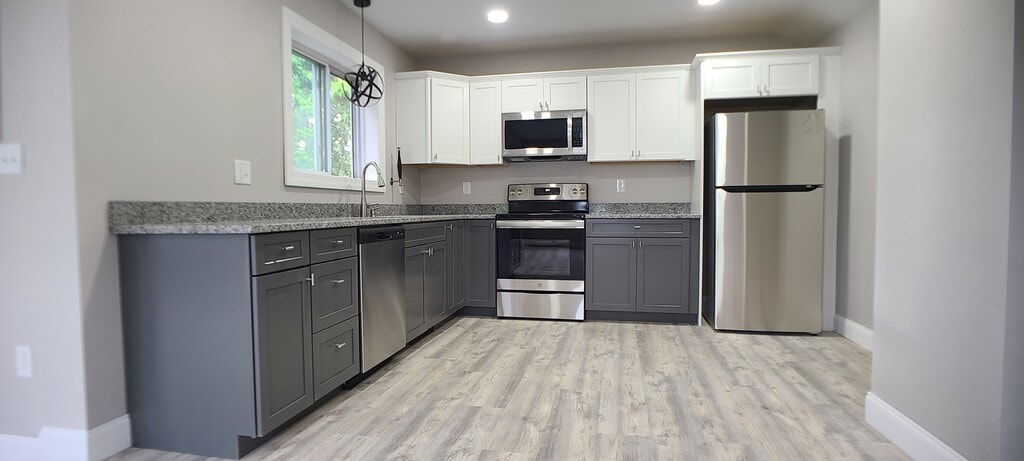 Stainless steel appliances and granite countertop. Luxury vinyl plank flooring. Freshly painted. Heat and hot water is included in the rent. Laundry hook-up in the unit. Off-street parking for 2 cars. Viewing by appointment only. No pets and no smoking.