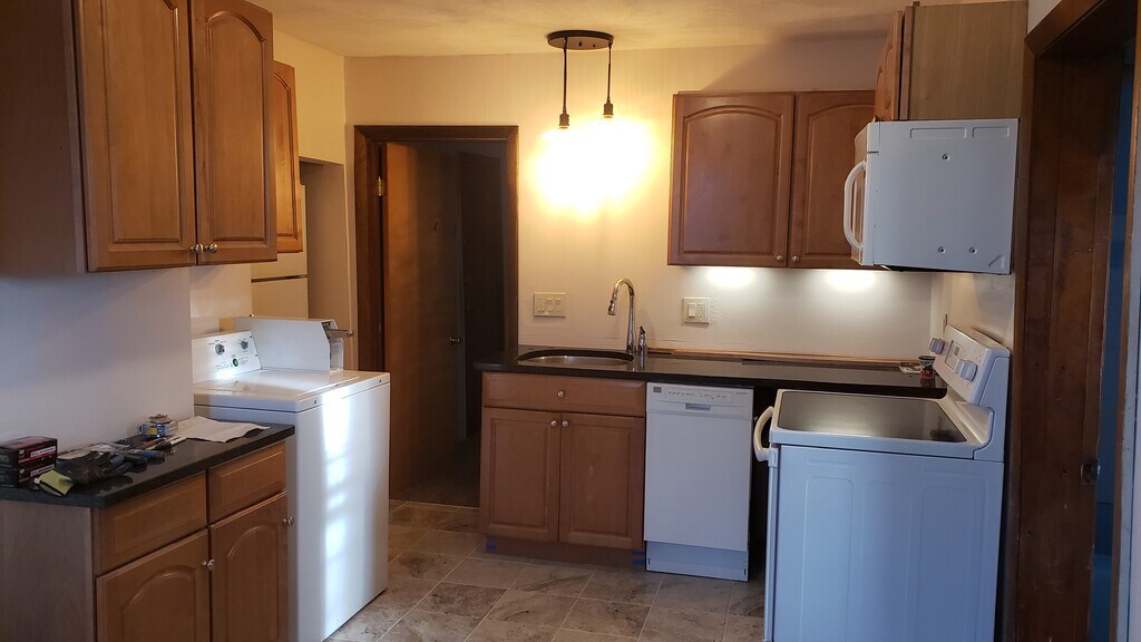 Available for April 15 or May 1. This house is located directly across the street from the ocean and Winthrop Beach. This first floor apartment has just been renovated, and includes the following: Kitchen - new cabinets, granite countertop and sink, under-cabinet lighting, garbage disposer, dishwasher, electric stove, microwave oven, porcelain tile floor, and pendant lighting. Bathroom contains full tub/shower, vanity sink, and new porcelain tile floor. The entire apartment has fresh paint, new carpeting and mini blinds throughout, plus updated high-efficiency, double-pane, vinyl windows, ceiling fans in family room and the large bedroom, plus all of the exterior walls have been thoroughly insulated with dense-packed cellulose insulation. A washer and dryer are included in the apartment. Absolutely no smoking allowed in or around the house. A first month's rent and security deposit are required before moving in. Heating is forced hot water by baseboard. Tenant pays for heat, hot water, and electricity. There is parking for one. Subsidized rent accepted. A cat may be accepted, with conditions.