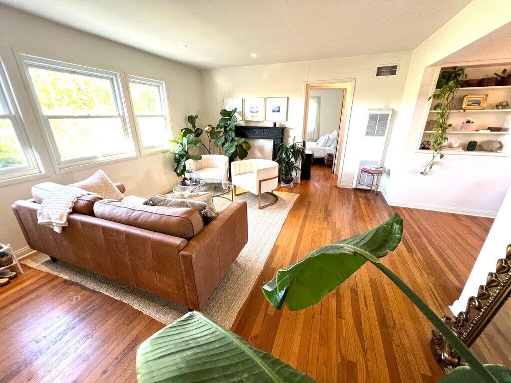 1 OF ONLY 4 UNITS! VERY SUNNY, QUIET and charming unit. PEACEFUL VERY CLEAN, light and BRIGHT in beautiful SUNSET PARK neighborhood! New kitchen floors, countertops and dishwasher. Stove and refrigerator included. CHARMING UNIT in QUIET 4-UNIT - 40'S STYLE BLDG. Building pridefully maintained by owner. Lovely HARDWOOD floors. VERY BRIGHT with newer WINDOWS GALORE (10 windows in all). Great location in Sunset Park 11 BLOCKS TO THE BEACH. Adjacent streets all lovely single family homes. Great homey neighborhood. NO ADJOINING WALLS can see outside GREENERY from all 3 sides. Looking for renters who enjoy a QUIET building and Pretty neighborhood. Built in bookshelves in dining room. Lots of closets. (5 total) PRETTY GARDEN under pine trees to read & sip coffee! No pets WALK TO BEACH, MAIN STREET and 3rd STREET PROMENADE. No pets. Just 5 mins to Whole Foods, and much more. 5 minute walk to track and Olympic size swimming pool. Must see! Please call for showing or additional information. Call or text please.