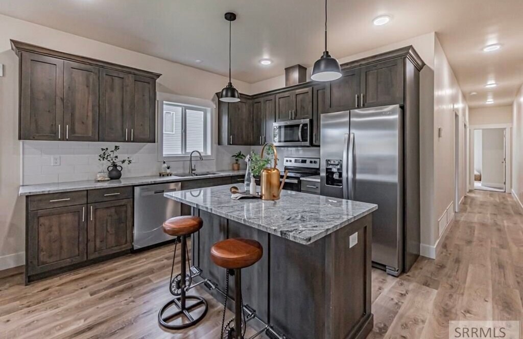 Welcome to your brand new home in the heart of downtown Idaho Falls! This exquisite 4 bed, 2 bath home spanning 1,950 square feet offers the perfect blend of modern luxury and serene living. Situated near the picturesque Snake River Greenbelt and the Historic Downtown Idaho Falls, this location boasts convenience and scenic beauty. Step inside this thoughtfully designed residence and be captivated by the spacious and airy layout, offering ample natural light throughout. The open-concept living area creates a warm and inviting atmosphere, ideal for entertaining guests and creating lasting memories with your loved ones. Aside from the beautifully finished kitchen the main level boasts 2 bedrooms 1 full bath as well as the main level laundry room. As you make your way to the basement you will be greeted by the large family room that flows into the 2 additional bedrooms, bathroom and storage room that make up the basement. Don't miss this rare opportunity to own a brand new home in downtown Idaho Falls. Come and experience the best of both worlds modern living with natural splendor in this extraordinary property