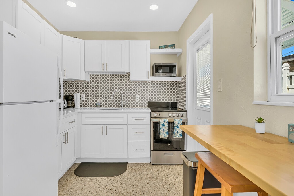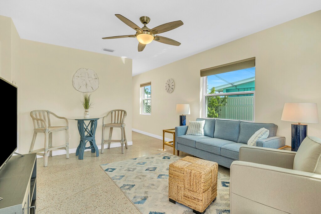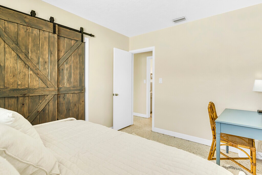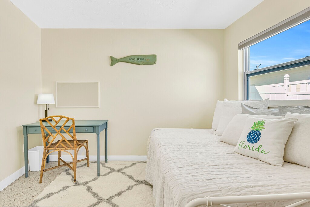 Master Bedroom: Queen bed. 2nd Bedroom: Full size day bed, desk, and full furnishings. Couches, flat screen tv, fully equipped kitchen. This is truly a turnkey property! Owner pays water, sewage trash utilities. Incremental $250 monthly fee covers electric, wifi and streaming cable.