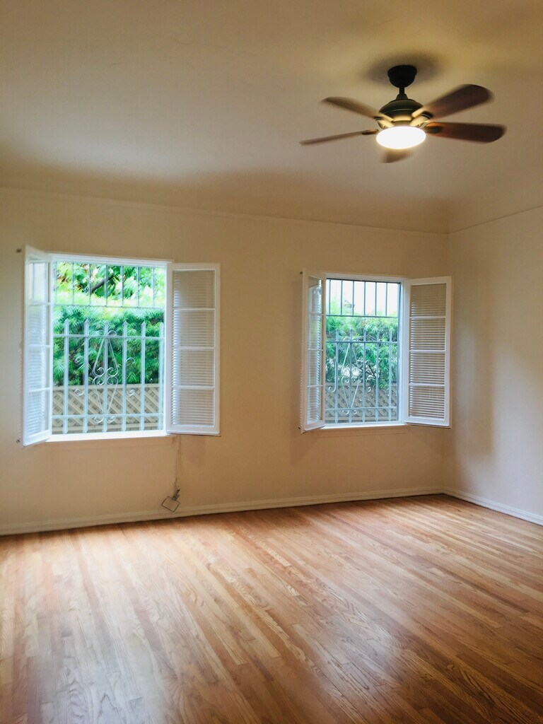 Please note: All units in this building are street parking only. In your response, please confirm that this meets your needs. I would describe parking as "good," you might not always find a place out front but there's usually a space somewhere on the street. I'm happy to let prospective tenants discuss parking with current of previous tenants. Beverly Hills Adjacent, 1+1, TONS of closet space! Refinished Hardwood floors! Spanish architecture, high rounded ceilings, french windows, original beautiful vintage tile. Painted a couple of years ago. Bathroom has both shower and separate deep bathtub! Key-less electric door locks. Small quiet 8 unit building * There are 2 separate spacious bedroom closets, 1 large hallway closet and lots of storage for linens, etc in bathroom. $2495 per month. Security Deposit is $2500 OAC. Lease is for 12 months, then reverts to month-to-month.* Additional Fees +$50 for each additional adult past 1 Please note: Pictures shown might be from similar units