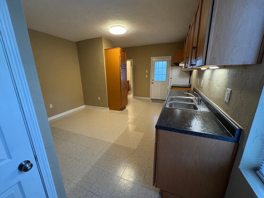 Newly remodeled, 3 bedroom / 1 bath, 1/2 duplex with full basement. Fresh paint & new flooring throughout. New kitchen appliances (electric range being installed this week). Newer 92% efficient gas furnace. Laundry hookups in basement but no washer & dryer 1 year lease minimum. Security deposit (= to 1 month rent), first & last month to move in. No pets. No smoking. Application (with fee), credit & background check required. Rent includes sewage and trash collection only. Gas, Electric, Water, Internet Service are all the responsibility of the tenant Call or txt PJ @ Seven2Four 5SevenZero 2Nine8Eight