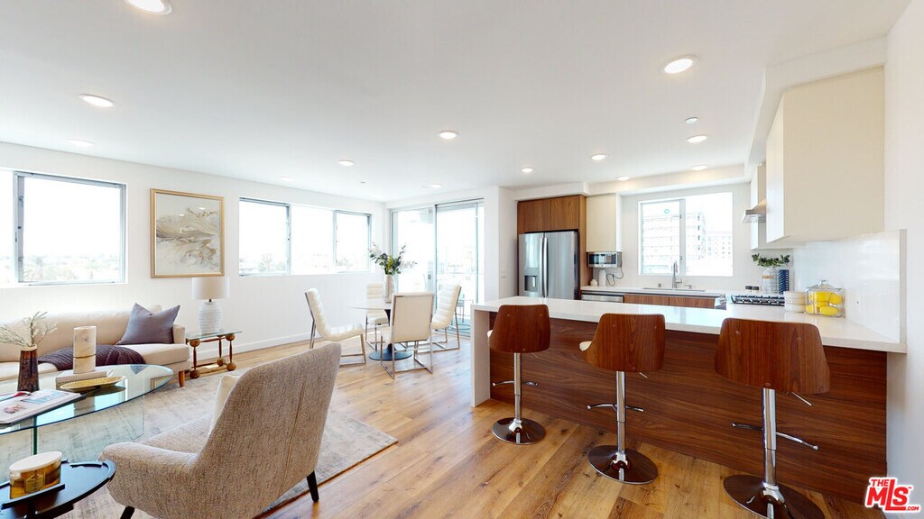 Welcome to Glenville Villas, a boutique modern luxury apartment community in prime West Los Angeles, offering refined design, premium finishes, and an exceptional Westside lifestyle. These contemporary residences are thoughtfully designed with open layouts, abundant natural light, and upscale details throughout. Each unit features a Brazilian-designed kitchen with modern cabinetry, quartz countertops, a full quartz backsplash, stainless steel appliances, and a spacious peninsula ideal for cooking, dining, and entertaining. The open-concept living areas create a bright, welcoming environment perfect for both everyday living and hosting. Select units offer private balconies with sweeping Century City skyline views, while bedrooms include custom Brazilian walk-in closets and refined woodwork. Additional features include LED lighting, central A/C and heat, and in-unit washer and dryer for modern convenience. Residents enjoy access to a rooftop deck with lounge seating and dining areas, providing panoramic city views and an ideal setting for relaxation or entertaining. Glenville Villas is conveniently located within walking distance to shops, cafés, and restaurants along Pico Blvd, and just a short stroll to Beverly Dr and Beverly Hills dining and retail. Pet inquiries welcome.