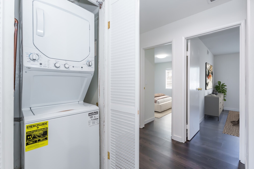 Come see this newly remodeled 2 bed 1 full bath second floor apartment in a 4-unit complex, located in the heart of the NoHo Arts District! The living room offers ample space for relaxation and entertainment, while the kitchen is equipped with essential owner-provided appliances including a dishwasher, oven, microwave and refrigerator. Additional amenities include two off street parking spaces, luxury vinyl plank flooring, a tankless water heater, central air conditioning, and an in-unit washer/dryer for convenience. The apartment is a short 2 block walk to Lankershim Blvd and the prime NoHo Arts District with its restaurants, shopping, coffee shops, and metro stations. The inviting well-maintained property is smoke-free, and pet friendly. The apartment is available now, please inquire further to schedule a viewing and receive an application!