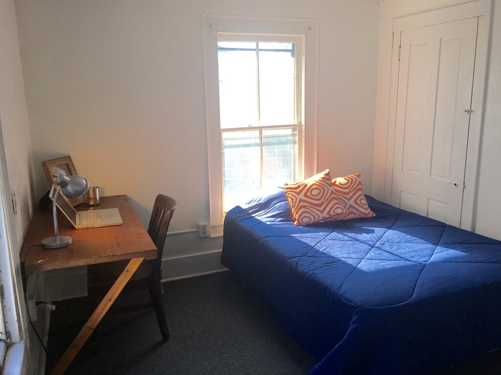 One Block from Downtown and an active bus stop making commuting very easy. as well as free off street parking.