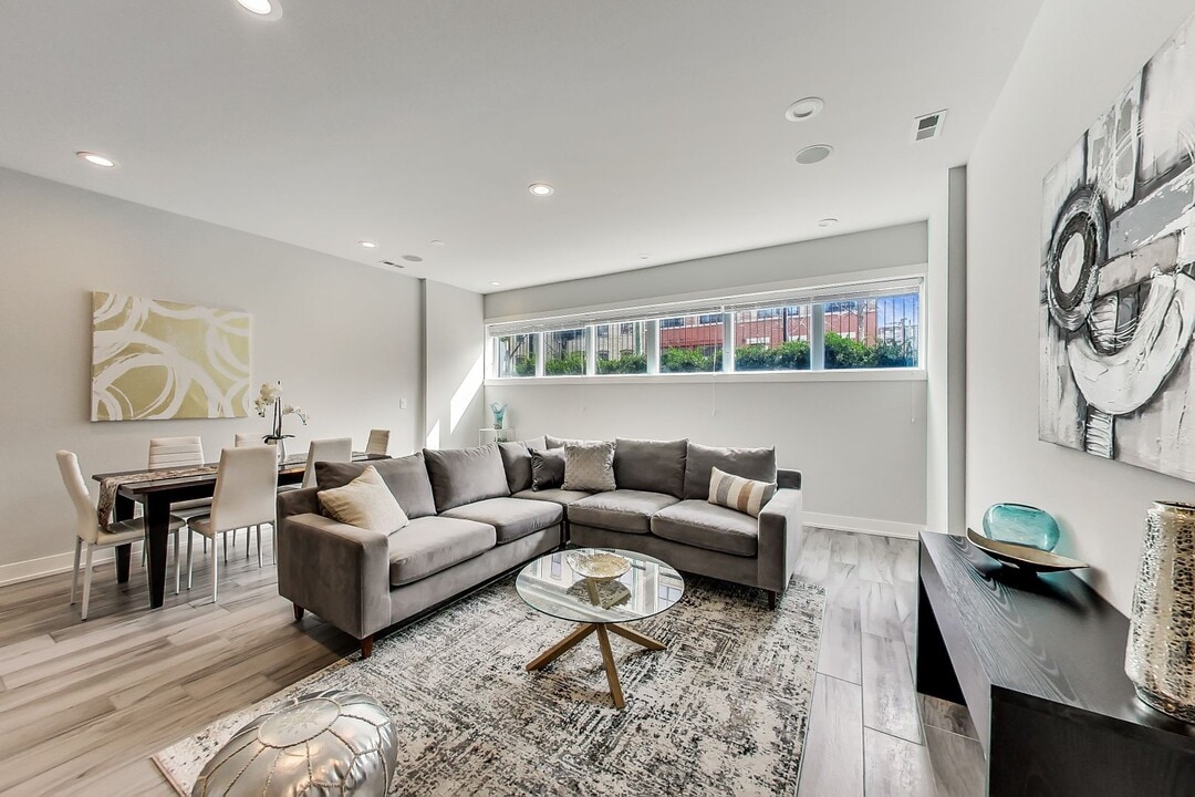 Spacious and modern 3-bedroom, 3-bathroom duplex down in the heart of West Town with private outdoor space and garage parking. This beautifully designed home features hardwood flooring throughout and a large open living and dining area, perfect for entertaining. Tall ceilings and a wall of windows fill the living room with natural light. The luxury kitchen is equipped with Bosch stainless steel appliances, quartz countertops with a breakfast bar, garbage disposal, custom backsplash, and abundant soft-close cabinetry. The lower level includes a spacious bedroom with a walk-in closet and a separate full bathroom. Upstairs, you'll find two additional bedrooms, including the impressive primary suite featuring two generous walk-in closets and a spa-inspired bathroom with double sinks and a steam shower. The third bedroom also includes a large closet and its own en-suite bathroom. Additional features include radiant heated flooring on the lower level and in the primary bathroom, an in-unit Whirlpool stacked washer and dryer, separate heating systems with individual controls, Wi-Fi thermostat, humidifier, surround sound wiring, and high-speed internet capabilities. Relax or entertain on the private garage rooftop deck with durable composite decking, perfect for grilling and enjoying summer evenings. Located in a highly convenient West Town location close to CTA bus routes 65 and 66, the Blue Line, and easy access to I-90/94, as well as neighborhood galleries, yoga studios, fitness centers, and a wide variety of dining options. Mandatory Resident Benefit Package: $40/month, which includes renters insurance, positive credit reporting for on-time rent payments, identity fraud protection, and additional resident services. Presented by Fulton Grace Realty, Chicago, IL.
