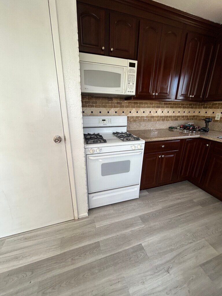 This is a 3 bedroom apartment with two bathrooms located in the second floor at back of a Four apartment building. The apartment has newly installed wooden floors. The kitchen is equipped with a stove, microwave, and refrigerator. The kitchen countertops are granite material. The four plex is gated and only tenants have entry. We have an on premise guard dog that is friendly to tenants but does not welcome strangers walking by.