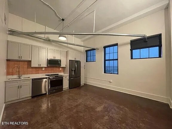 Experience modern urban living in this unique penthouse 1-bedroom, 1-bath condo at Sterchi Lofts. Located walking distance to Market Square, The Old City area and just a short distance to the UT campus, this is the perfect combination of downtown convenience and exceptional amenities. With this unit being on the 10th floor, you'll have a great view onto the downtown skyline and, on a clear day, you'll even see the Great Smoky Mountains. Amenities in the building include an exclusive, panoramic rooftop deck and a fitness center with several high-end exercise machines and other quality equipment. In the unit, you'll find sleek stainless steel kitchen appliances and a recently installed LG large-capacity stacked washer and dryer (4.5 cu. ft. W / 7.5 cu. ft. D) - updated photos of the laundry set coming soon! 9-18 months lease offered Tenant pays for all utilities (owner pays building's HOA fee)