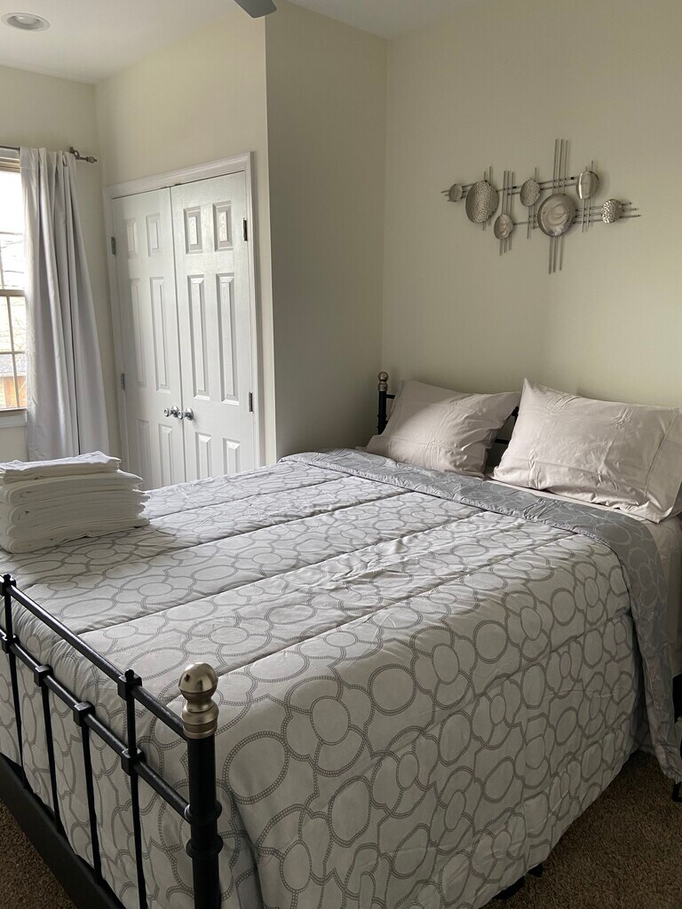 Welcome to this cozy 2BD/2.5BA fully furnished home in Pigtown. This home is located on a quiet street with free ample parking. It is less than one mile from UMMC. Ideal for friends or a couple. This home features exposed brick, carpet and hardwood floors. The fully equipped kitchen comes with all major appliances including a refrigerator, dishwasher, microwave, and stove. The main floor also includes a half bath and a full sized washer & dryer. The main bedroom (facing the backyard) includes a queen size bed, TV and an en-suite with double sinks and a soaking tub & shower. The second bedroom (facing the street) includes a queen size bed and TV. The bathroom is outside the bedroom. The furnished basement provides extra space to entertain and as an extra bonus, there’s a rooftop deck to hangout. Pets are not allowed.