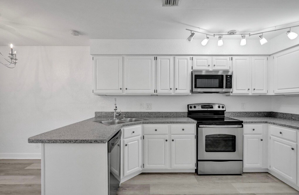 Courtesy of Berger Realty Group Inc-- 3 bedroom, 2.5 bath, 2 story townhouse with 1 car garage located in the coveted Eagles Nest community. Brand new gray flooring and freshly painted. Fantastic layout with eat in kitchen and separate dining room. All bedrooms located on the 2nd floor. Built-in closet in primary bedroom. Stainless steel refrigerator, stove and dishwasher. Private screened patio overlooking the water with additional patio area.
