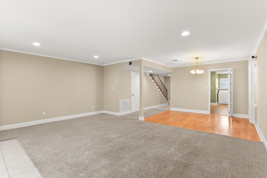 This 1800 SF townhouse apt boasts 3 large bedrooms and 2 ½ baths. Downstairs is a large open floor plan with living room dining room combination. There is plenty of light with 12 feet of patio glass along the back wall of the LR, opening onto the covered patio and a huge, fenced back yard. There is a foyer with half bath. There is wood flooring in the DR, ceramic tile in the kitchen, hallway and baths. It has a large kitchen with newer cabinets, counters, white appliances and laundry room. Large closets abound. There is new high-efficiency central AC/ Heat. Appliances include Electric range, Microwave, dishwasher, refrigerator, washer and dryer. Upstairs are 3 large bedrooms, primary large enough to fit a king size bed, 2 double closets and its own private bath. The other 2 bedrooms are large and share a bath off the upstairs hall. It has been freshly painted, all windows have been replaced and carpets are like new. It also offers off-street parking for three cars. Located on 28th Street near Pontchartrain Blvd., 2 blocks from Harrison Av with convenient access to Metairie, I-10/I-610 /Pontchartrain Expressway, Close to the Lakefront. Nearby stores are Lakeview Harbor Grocery on Harrison Av, Winn-Dixie in Metairie on Vets, Dorignac’s in Metairie on Vets, and Robert’s Fresh Market on Allen Toussaint Blvd. Apt resides in the Hynes Charter School District.
