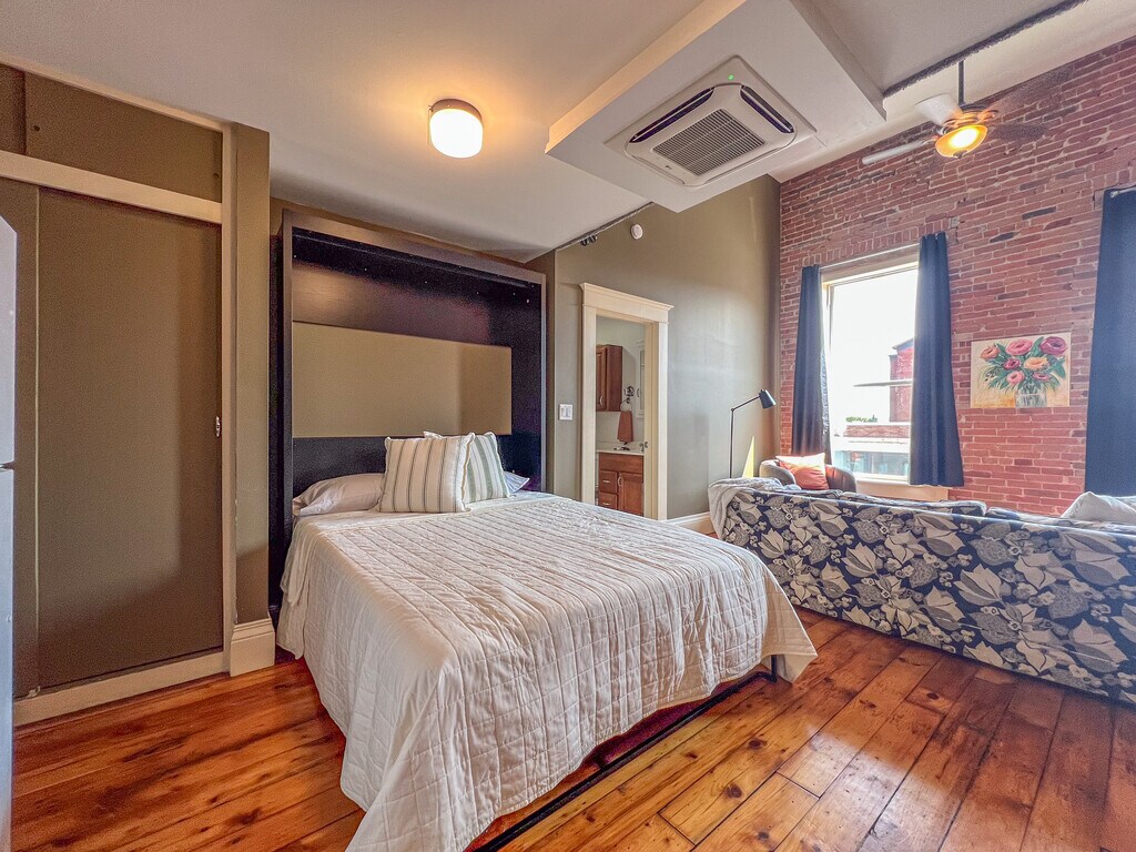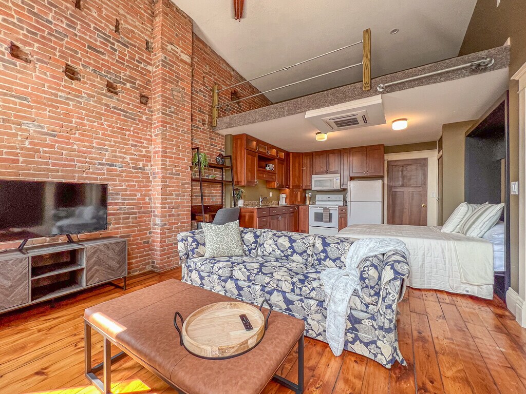 Welcome to a piece of history in this captivating studio apartment! Nestled within a beautifully updated building, this space showcases the timeless beauty of exposed brick walls that exude character and charm. The well-appointed kitchen adds a touch of modernity, creating a perfect blend of old and new. With the added convenience of off-street parking, you'll enjoy the best of both worlds – a taste of the past and the comfort of contemporary living. Don't miss out on the chance to call this unique and charming studio yours. Off street parking, high speed fiber internet, electricity, gas, water, sewer and trash included in rent. Owner is a licensed Realtor.