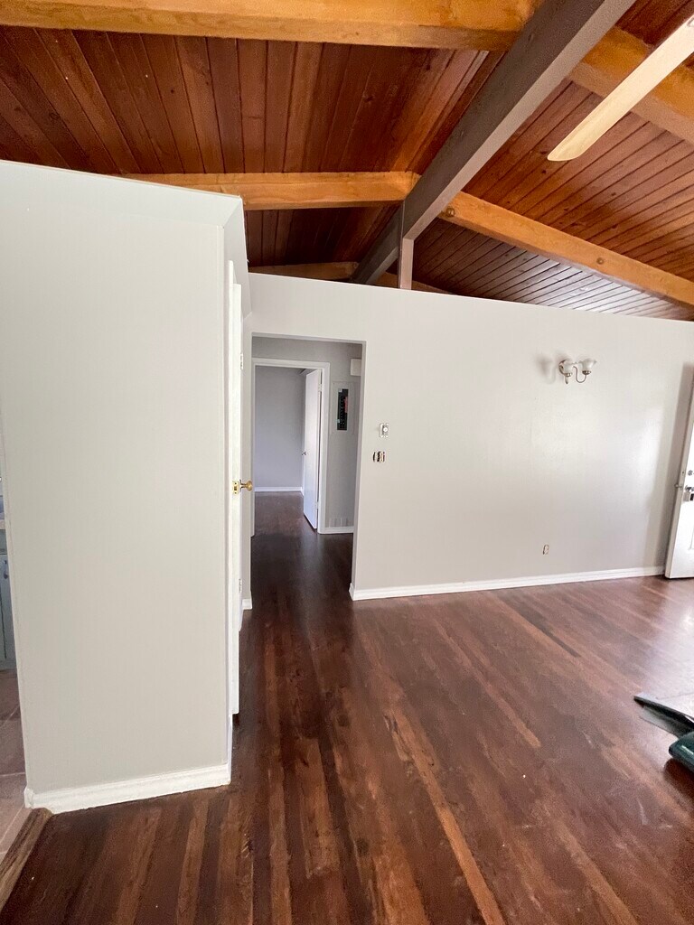 No animals. No smoking anywhere on property. Must have clean rental history and good credit. 1 bedroom ground-floor apartment with hardwood floors and beautiful hardwood vaulted ceilings. Unit includes an office room as well. Close to transit, shopping, dining and the Beaverton library. Private parking outside the front door. In-unit washer/dryer. This is one side of a single level duplex. We are seeking a quiet tenant for this quiet duplex. Manager covers water, sewer, and trash. Tenant pays electricity. Applicant must have no past evictions and clean rental history, with references and history of on-time rent payments. Applicant must provide financial documentation demonstrating ability to pay rent. NO SMOKING ANYWHERE ON PROPERTY. NO VAPING. No animals. This is a quiet property and neighbors appreciate peace and quiet.