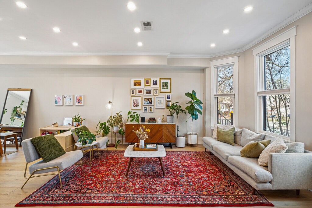 Welcome to 118 15th Street NE — a beautifully renovated Victorian row house in one of Washington DC's most sought-after neighborhoods. Fully gut-renovated in 2021 with all-new plumbing, electrical, and mechanical systems, this home offers the charm and character of Capitol Hill with the peace of mind of a brand-new build. The open main level impresses immediately, with wide-plank hardwood floors, crown molding, recessed lighting, and an exposed brick staircase wall that anchors the home's historic character. The living and dining areas flow seamlessly, bathed in natural light from oversized bay windows. The designer kitchen features gray shaker cabinetry with brass hardware, quartz countertops, a farmhouse sink, subway tile backsplash, stainless steel appliances, a center island with seating, and pendant lighting — opening directly onto a private rear deck with a pergola, perfect for entertaining. Upstairs you'll find a generous primary bedroom with a beautiful bay window, exposed wood beam ceilings in a second bedroom, and a fully renovated spa-like bathroom with herringbone tile, a soaking tub/shower, quartz vanity, and matte black fixtures. Full-size in-unit washer/dryer included. 118 15th Street NE, Washington DC 20002 $4,950/month | Tenant pays water, gas & electricity 3 Bedrooms / 1.5 Bathrooms / 1,500 sq ft Available June 1, 2026 | 12-month lease minimum required - Fully gut-renovated 2021 — all new plumbing, electrical & mechanical - Hardwood floors throughout - Designer kitchen with island, brass hardware & farmhouse sink - Exposed brick accent wall - Private rear deck with pergola - Full-size in-unit washer/dryer - Keyless Entry - Two Security Cameras installed in the front and back - Nest Thermostat - Solar panels - Pets welcome - Street parking available - Steps from Lincoln Park Zoned for *** MAURY ELEMENTARY SCHOOL *** — one of Capitol Hill's most sought-after public schools!