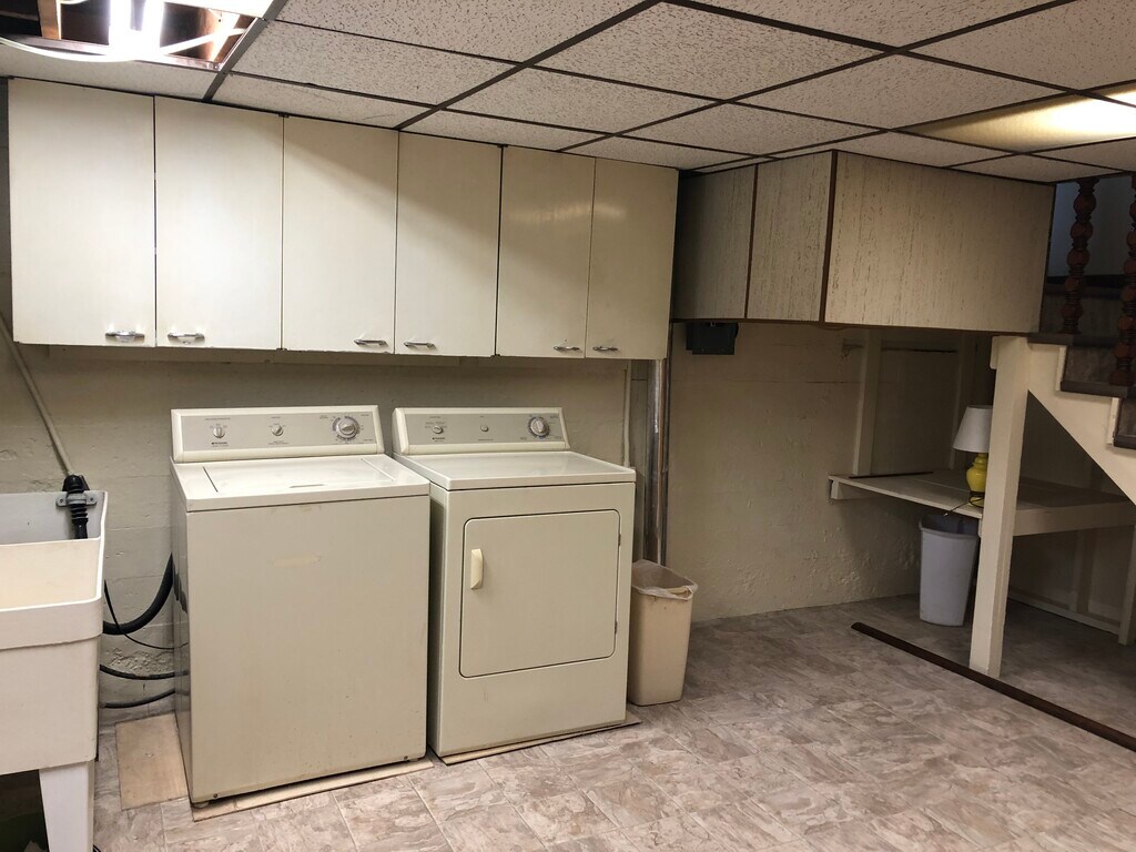 Duplex unit; 3 bedrooms; 1845 sq. feet. Refurbished in 2022 with refinished oak flooring and new vinyl flooring throughout. Window treatments are mini blinds and living room draperies. Upgraded lighting. Finished basement/washer & dryer included. Off street parking in adjacent lot. Tenant pays electric/gas. Pets negotiable. Qualified applicants will be able to pass background/credit check; provide proof of income; provide 3 references.