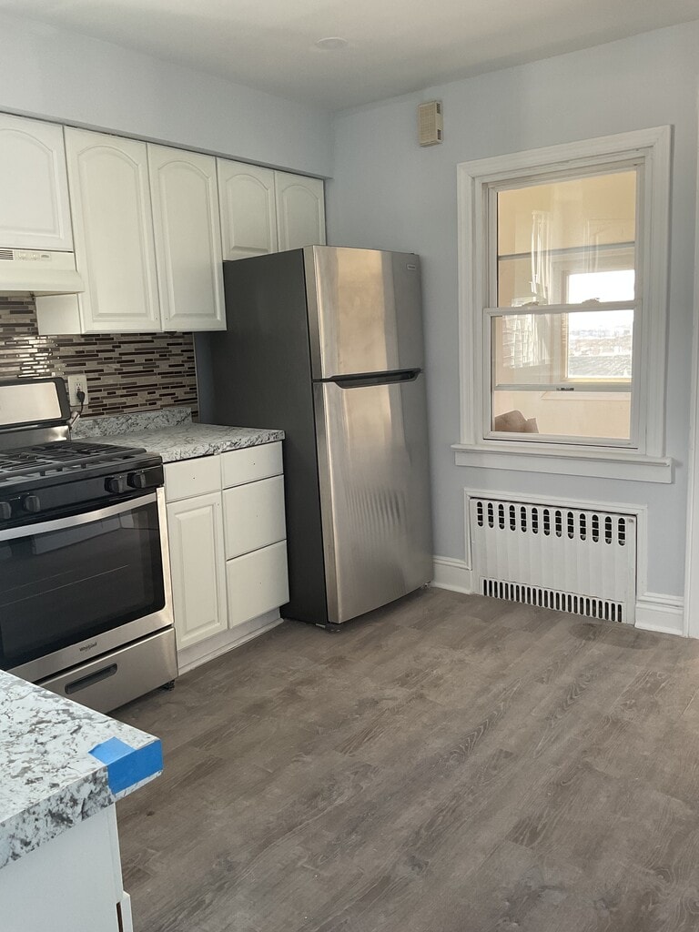 . Beautiful 3 bedroom apartment that has been gut renovated with brand new floors, paint and kitchen! The kitchen is spacious to cook the most meals to entertain friends and family. Plenty of bright natural light in all views and makes waking up so glorious. Cozy sized living room area, and great sized bedrooms. Master bedroom with a huge walk-closet or can be used as an office area or for a new born baby room, the ideas are endless. By the kitchen door you have access to your own private storage space. Great place to make your new home. Section 8 Vouchers are welcomed!! Vacant and Easy to Show! Tenant pays broker fee.