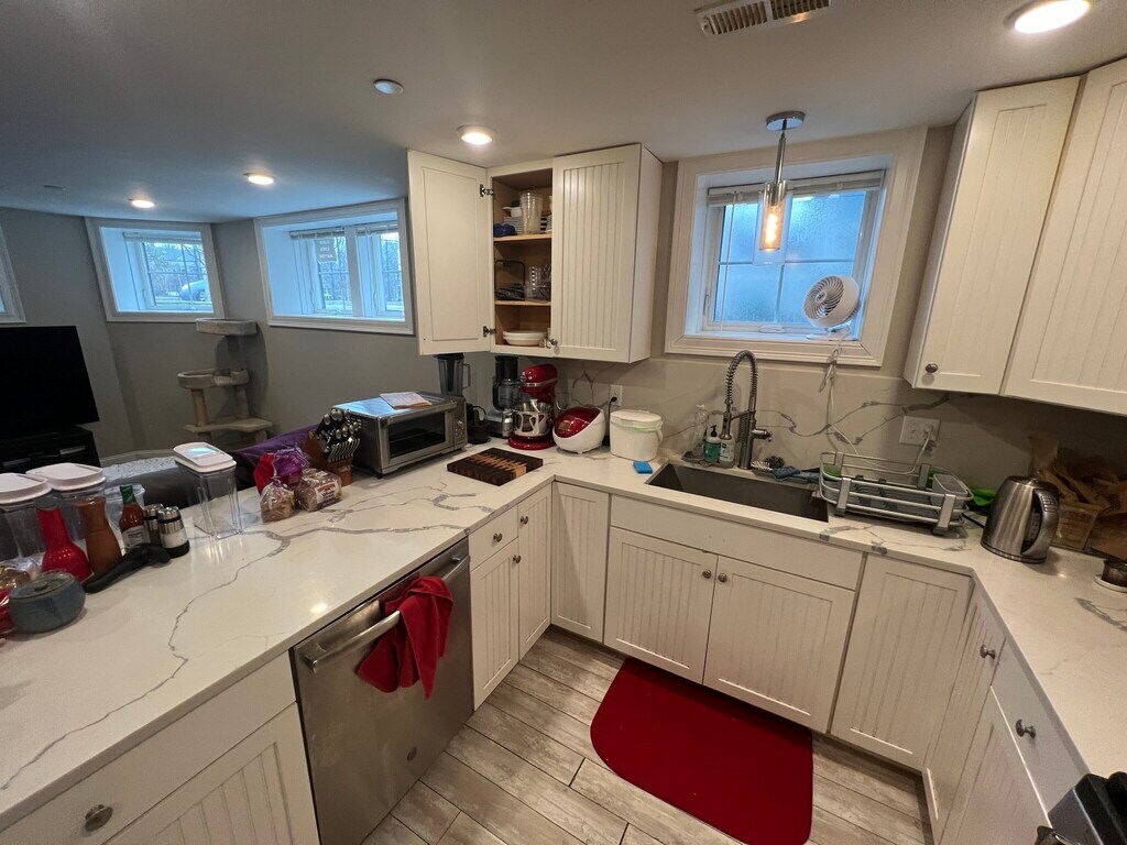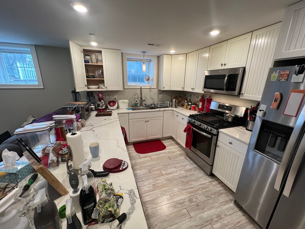 **Virtual tour available upon request** - 4 bed/2 bath (second floor, left-side) - Brand new EVERYTHING in 2018 - Gorgeous white-granite counters - New cabinets - All new stainless steel appliances (including wine fridges!!) - In-unit laundry - Modern/tiled bathrooms - Hardwood floors throughout - Central heat/ac (NEST thermostats) - Private front deck - Off-street parking spot INCLUDED - No Last Month Rent Deposit. - Pet Friendly