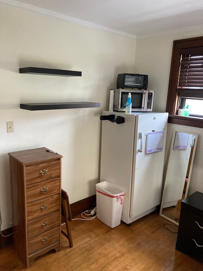 Clean studio type room with fridge, microwave, 32" smart TV, shelfs, closet, twin bed, and dresser. Safe secure keypad access to room with private keypad entrance to building. Room is on the second floor. Large full bathroom (shared by two) is downstairs. All utilities (and Wi-Fi) included. NOTE: $ 150 Move-In Fee. RENT is $ 500 per month. Employment verification required. Rent is month to month, minimum 1 month stay. No Pets. Non-Smoking Building Great location in the heart of downtown Sheboygan Falls. Close to Kohler Golf courses, Library, YMCA, Evans variety store, shops, restaurants, cafe's. 1.5 miles to Kohler. Multiple parks nearby. Bike storage offered. Off street parking.