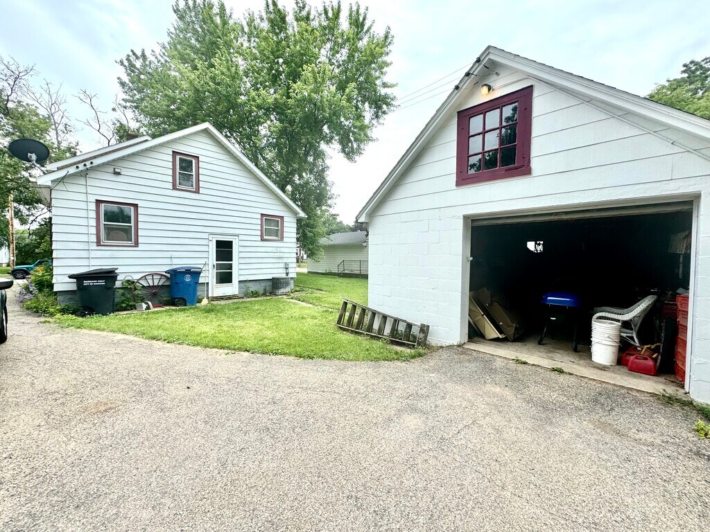 This is a bright, cozy (modest-sized) three bedroom single family home with an oversized 1.5 car garage, large enough for any vehicle and additional storage. The layout includes a main small-sized bedroom with closet on the main floor, a lovely living room with updated flooring and a fun paint pallet, dining room that opens to the living area for an open feel, and a full kitchen. The upstairs features two bedrooms with sloped ceilings (possibly was at one time an attic space before a previous owner conversion). The first bedroom you enter up a slightly steep set of stairs and there is a walk through bedroom left of the stairs with a cute built in drawer set to the right of the stairs. After the walk through bedroom there is a third larger (but also slopped ceiling bedroom that is the largest of the three bedrooms, currently easily accommodating a king bed.) This layout would be appropriate for a family with a few children with the option to have parents on main floor or in larger bedroom at end of walk through. Full bathroom with tub on the main floor. This unit, initially priced at $2200 (not including any additional bills) is a great opportunity for a family or other renting individuals to scoop up a three-bedroom single family house in an ideal location, neighborhood, near the lake and Oshkosh Defense, with an abundant garage and fantastic yard! This home did previously host pets and will be steam cleaned, ozone treated with some light painting. For those with extreme allergies to homes that have once hosted pets should not apply. This unit can also be converted and booked as a furnished rental inclusive of bills, which would include more updates and bills included (furnishing/cable/WiFi/utilities/lawn/snow service at $2,750 a month) with a minimum of a six-month booking. This is a pre-posting of a hard-to-find 3-bedroom-SFH with great yard and garage in Oshkosh. Lots and lots of room for parking in this driveway area. This unit may be reserved in advance if tenant has a flexible start date with a $1,000 security deposit, with first month rent due once start date is firmed.