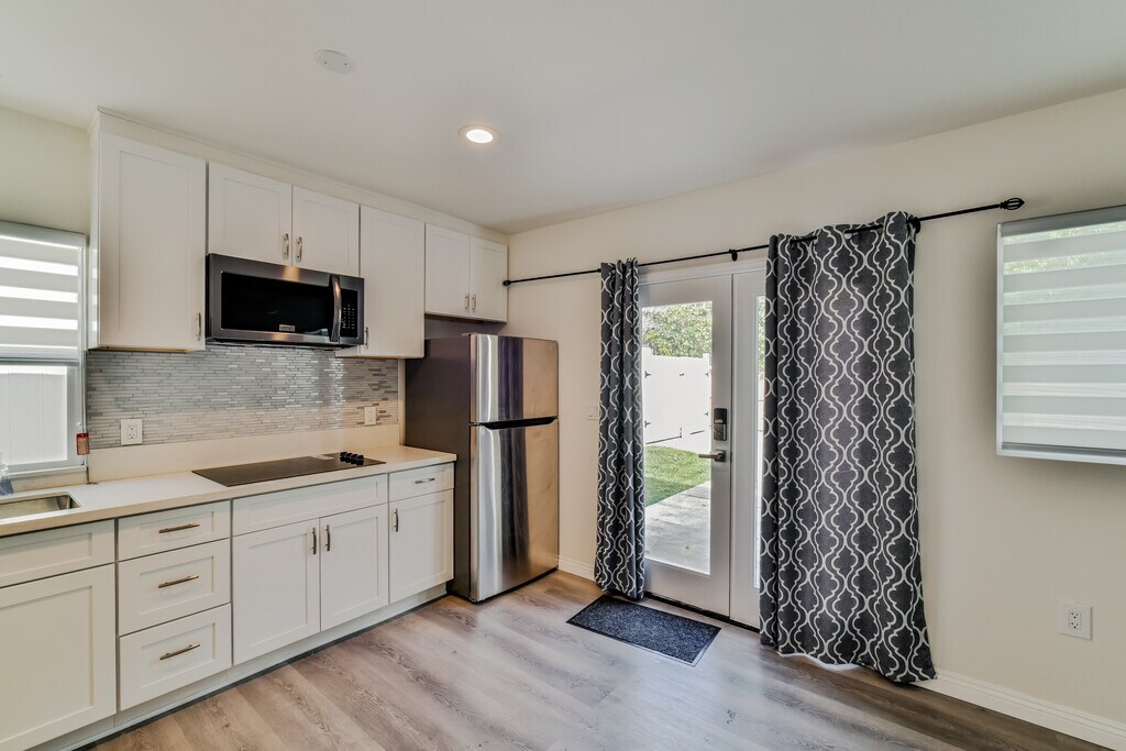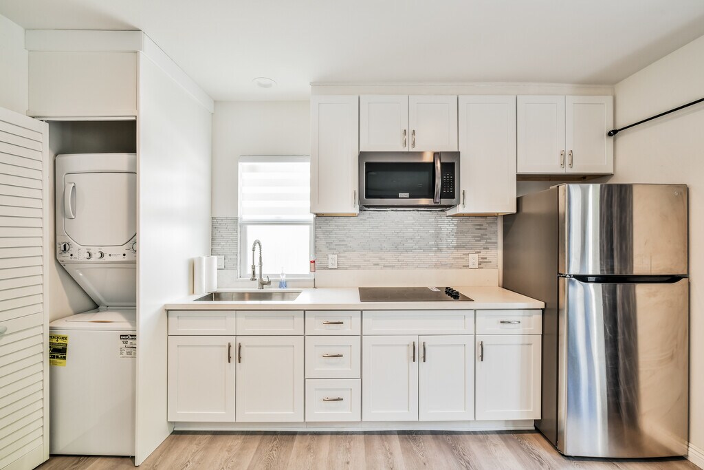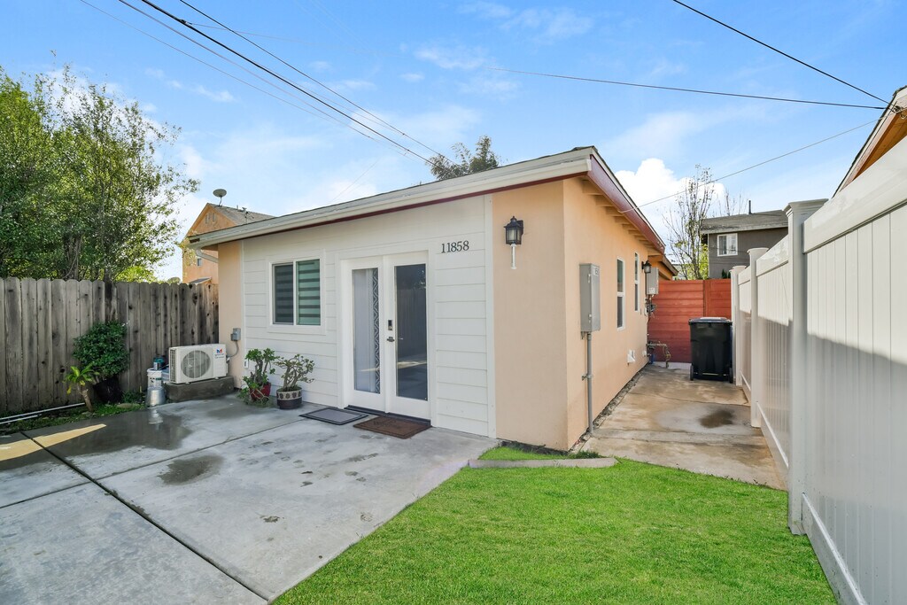 Comfortable and impeccably clean studio-type ADU located close to all the exciting hotspots in Playa Vista and Culver City! Nestled at the back of the main property, this unit offers a peaceful and secluded setting, with a newly installed vinyl privacy fence and gate separating it from the main house. The bedroom boasts a comfortable pull-out mattress attached to a custom wall dresser, while a mini-split unit keeps you comfy with its powerful air conditioner and heater. Conveniently near the bedroom is the bathroom with its glass-enclosed corner shower and a single sink vanity with mirror. You'll love the convenience of the sleek and compact stackable washer and dryer discreetly tucked away in a laundry closet. The kitchen is adorned by an elegant tiled backsplash and comes fully equipped with tasteful amenities, including classic shaker-style cabinetry, a stainless steel refrigerator, microwave, and electric cooktop, as well as a versatile pull-out faucet. Right outside is an open area with a verdant patch of lawn, where you can setup some seats for al fresco dining or a tranquil reading nook! This home’s convenient location puts you close to Playa Del Rey, Venice, Marina Del Rey, and Santa Monica beaches. Enjoy the bike paths and walking trails nearby, as well as the diverse restaurants and shopping centers in Playa Vista and Culver City! LAX Airport is just an 8-minute drive, and two major freeways are within a short distance, too! Lease Term: 12 Months Available: Immediately Deposit Amount: one month rent Pet Deposit: $500 Included in Rent: Water Parking