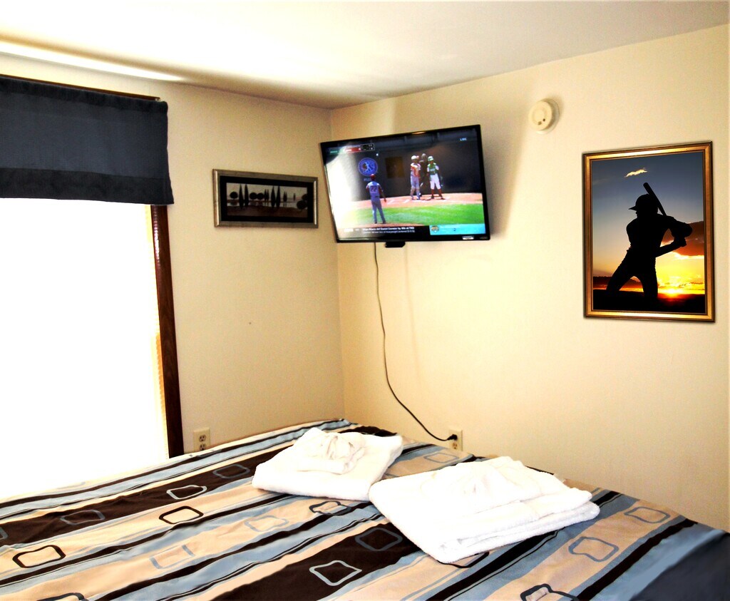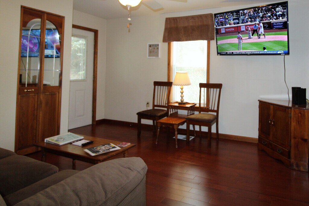 This is a ground floor one bedroom apartment that offers a queen size bed, one full bath, a comfortable living room with a large flat screen TV, and an eat-in kitchen. High speed wireless internet (Wi-Fi) and air conditioning are standard amenities included with all our rental properties. The eat-in kitchen features a full size refrigerator with automatic ice maker, gas range, microwave and an updated granite tile floor and tile backsplash. The bathroom is fully tiled with a tub/shower combination and a granite floor. There are 2 smart flat screen Roku TV's in this apartment. There is an on-site, shared laundry facility and shared back yard. This unit has its own private side patio area. There is ample off-street parking. Short term lease. Suitable for one individual. Additional fee for double occupancy. On/near Oneonta city bus route, just a short distance from the colleges. This property is leased as of 5/17/26, so no extension of the lease is possible. Perfect for traveling nurse or professional looking for short term accommodations. All utilities, landscaping and plowing of parking area included. ABSOLUTELY NO SMOKING, NO VAPING, NO PETS OF ANY KIND. NO EXCEPTIONS.