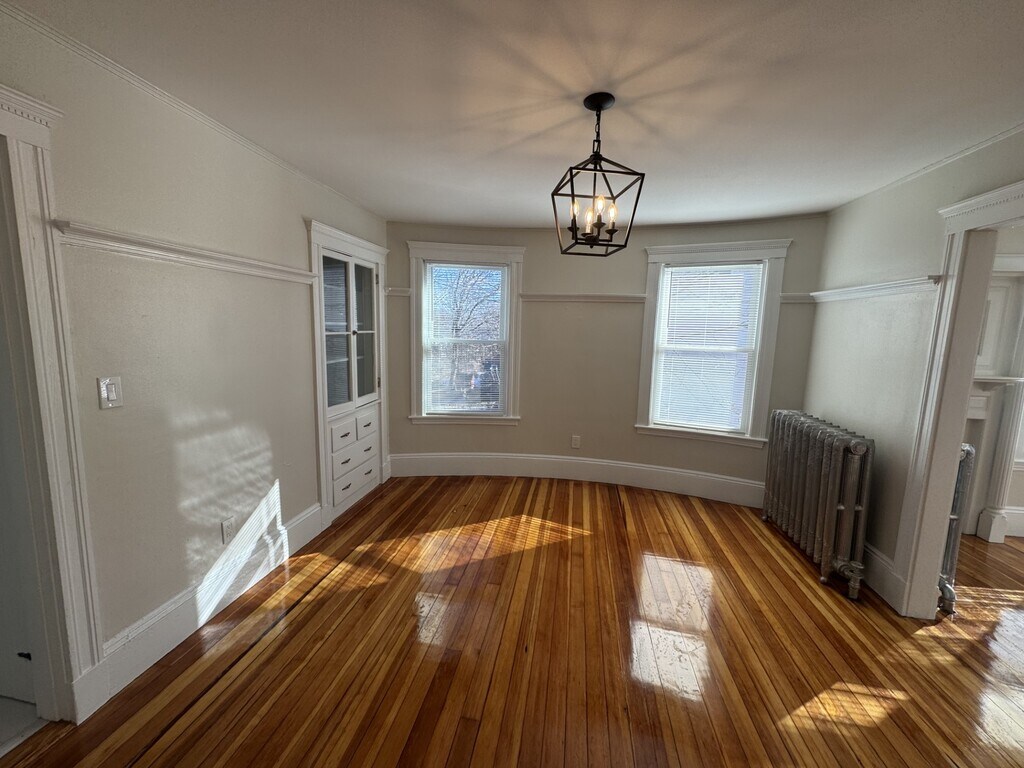 .Newly renovated three-bedroom, second floor apartment on Glendower Rd. in the Roslindale section of Boston. Modern eat-in kitchen features recessed lighting, ceramic tile floors and new stainless-steel appliances. The renovated bathroom includes a new vanity, mirror, lighting, refurbished tub, and ceramic floors. The sunny living room opens to a formal dining room. Gleaming hardwood floors in the living room, dining room and bedrooms. Two bedrooms are approximately 10' x 12' while the third smaller bedroom, which can also be used as an office, is 11' x 6'. The apartment has a sunny front porch.Coin-op laundry in the basement. Rent is $2800 and tenant pays for utilities (oil heat). First, last and half month security deposit required. Move-in date is flexible. On street parking. Cats are allowed, no dogs. Conveniently located near Washington St. bus line to Roslindale Square commuter rail and Forest Hills Orange line.
