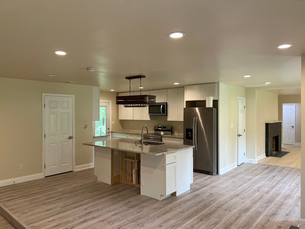 Fully Renovated 3BR/2.5BA • 2,000 sq. ft. • Half-Acre Lot – Prime Raleigh Location Step inside and discover a home that feels brand new. Renovated top to bottom in 2023 — new floors, walls, paint, windows, bathrooms, kitchen cabinets, and appliances — this Raleigh rental home combines the look of new construction with the comfort of an established neighborhood. The open-concept living space is anchored by a bright, updated kitchen featuring an oversized island with seating for four, stainless appliances (refrigerator, stove, microwave, dishwasher), and a walk-in pantry for plenty of storage. A spacious sunroom overlooks the large yard, perfect for relaxing or entertaining. The primary suite offers a heated-floor bath with a walk-in shower and premium tile. Two additional bedrooms share a full bath with a tub/shower combo, and a stylish half bath serves guests. All bedrooms include ceiling fans for year-round comfort. Additional highlights include: Two fireplaces for added charm (living room gas, kitchen decorative) Large poured-concrete deck for outdoor dining or lounging Expansive driveway with room for four vehicles Washer/dryer hookups No pets allowed Only ½ mile to I-40/440, 2 miles to Lake Johnson, 2.5 miles to Crossroads & Fenton, and 5 miles to downtown Raleigh This 3 bedroom house for rent in Raleigh NC is move-in ready, beautifully finished, and perfectly located — close to shopping, dining, parks, and everything the city has to offer.