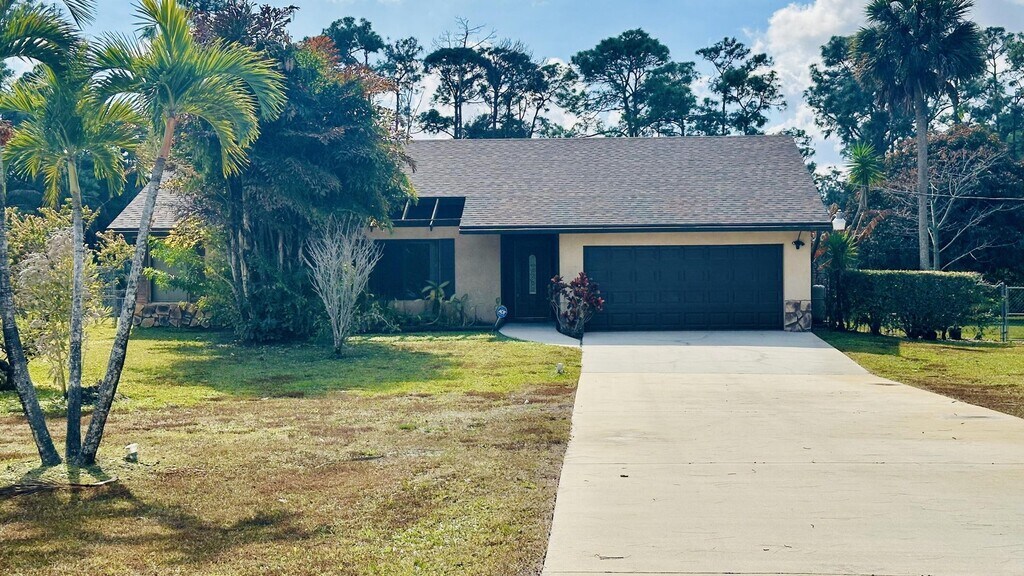 Charming single-family home for rent in The Acreage, West Palm Beach, situated on a spacious 1.25-acre lot. A long, private driveway lined with open green space welcomes you to the home, offering both curb appeal and extra privacy as you arrive. This beautiful property features 4 bedrooms and 2 bathrooms, plus a 2-car garage with plenty of parking for trucks, boats, and RVs. Enjoy a relaxing screened patio perfect for outdoor living. New roof and new A/C. The property is filled with mature trees and fruit plants, including mango, banana, fig, orange, and sugar apple trees, creating a peaceful, tropical setting. Conveniently located close to shopping plazas, restaurants, and everyday amenities. onathan & Giannina Babilonia Babilonia Team Realty One Group Innovation 14590 South Military Trail Suite E8 Delray Beach,FL 33484 Luxury estate, Property management,Renovation advisor,Residential & Rentals. Courtesy of Highlight Realty Corp/LW